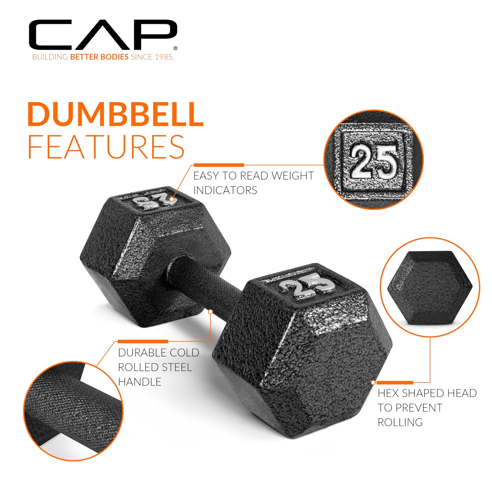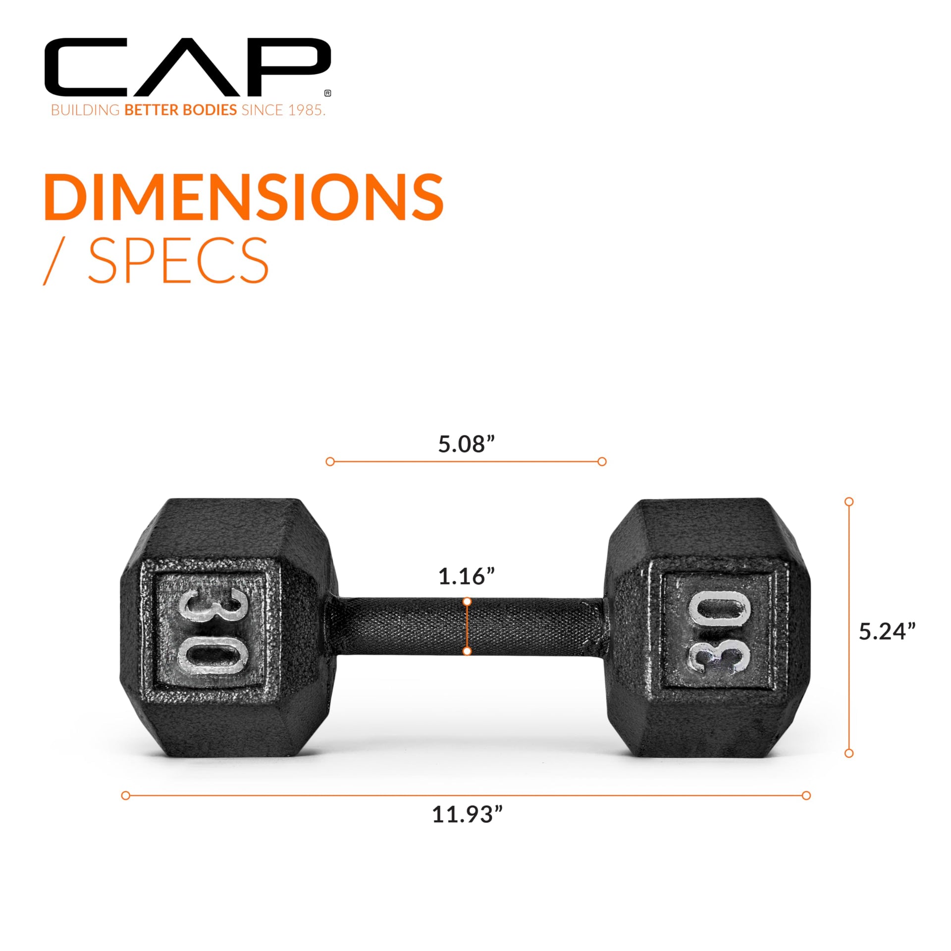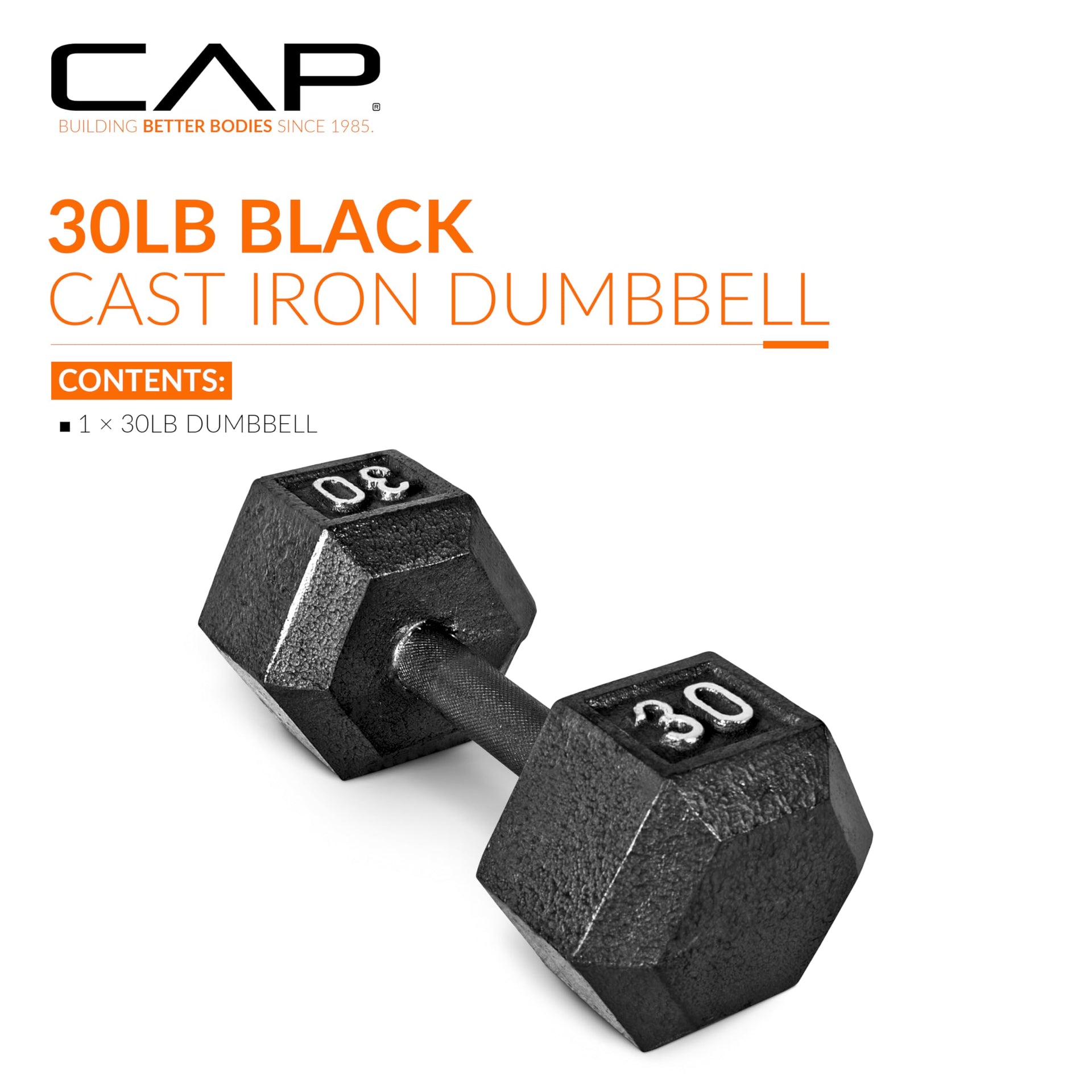 Cap Barbell Cast Iron Hex Dumbbell, Black, Single, 30 Lb