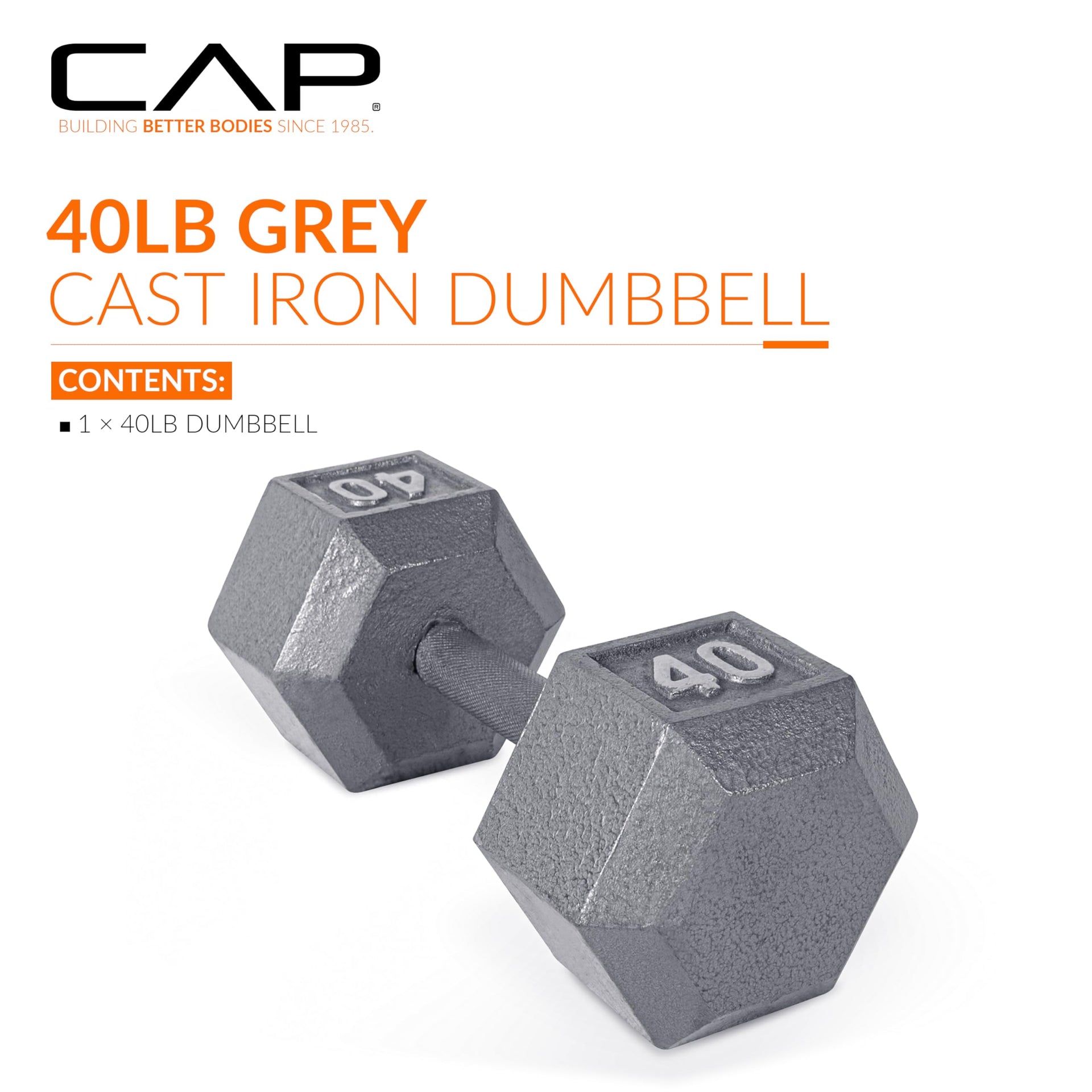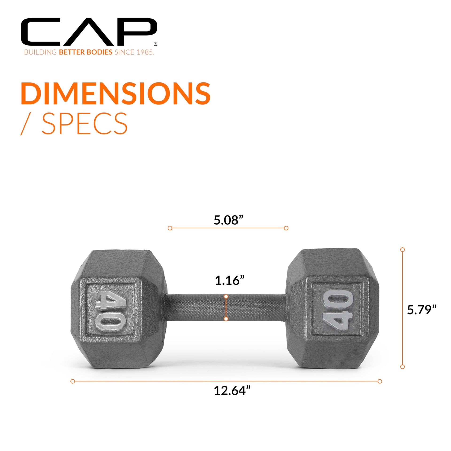 Cap Barbell Cast Iron Hex Dumbbell, Single, 40 Lb