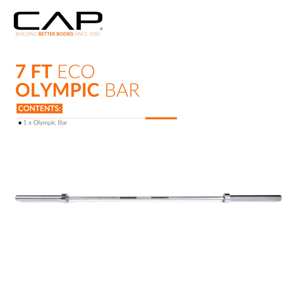 The CAP Barbell Classic 7-Foot Olympic Bar is an ideal choice for those looking for a 7ft Olympic Weight Bar for Olympic lifting and powerlifting. Designed with medium-depth diamond knurling and 30mm handgrip diameter, this Olympic Barbell 7 Feet ensures a tight, non-slip grip, providing stability and confidence while lifting. The sleeves swivel to reduce forearm pressure and help prevent warping, making it suitable for various Olympic bar exercises like bench press and deadlift. Crafted from cold rolled steel with a tensile strength of 63,800 PSI, this heavy-duty Olympic Bar has a shaft length of 51.75 inches, featuring knurling that measures 10.75 inches and 6 inches on each side-fitting perfectly on Olympic benches and racks/cages. The loadable sleeve length of 15.3 inches provides ample space for your Olympic weights (2-inch center holes). This 7ft Olympic Bar offers the strength and durability required for beginners and intermediate athletes. With medium-depth knurling for a comfortable grip, this 7-Foot Olympic Bar for squats, deadlifts, and bench press is great for building strength. The CAP Barbell Basic Olympic Bar is designed to support various training styles, making it a reliable Olympic Barbell for beginners. The 30-day manufacturer warranty ensures quality and customer satisfaction. (Please review CAP Barbells warranty policy for details.)