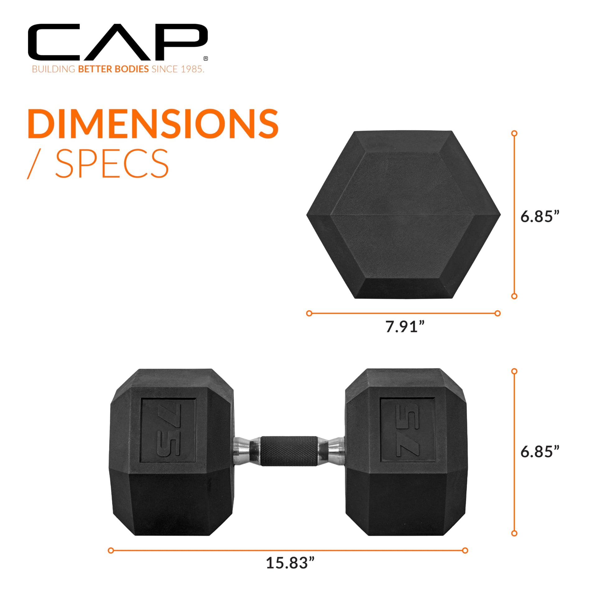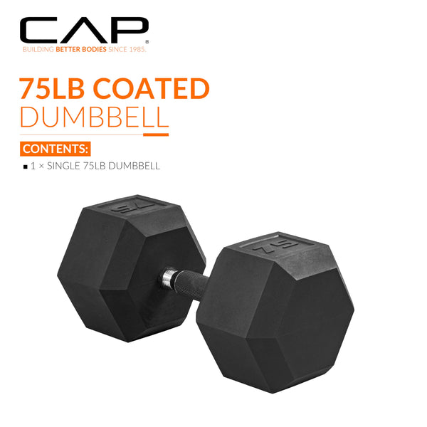 These dumbbells incorporate commercial gym durability with comfort and affordability. Dumbbells are used to exercise all major muscle groups, including arms, chest, back, abs, legs and core. The benefits of dumbbell exercises include muscle building, improving core strength, boosting balance, providing better bone health, burning calories, increasing energy levels, enhancing overall mood and more. Dumbbells are perfect for isolations, full body, functional and HIIT workouts. The CAP Barbell Coated Dumbbell heads are made from ASTM A48 Class 20 grey iron with a durable coating and joined together by a solid 1018 cold rolled steel chromed handle.
