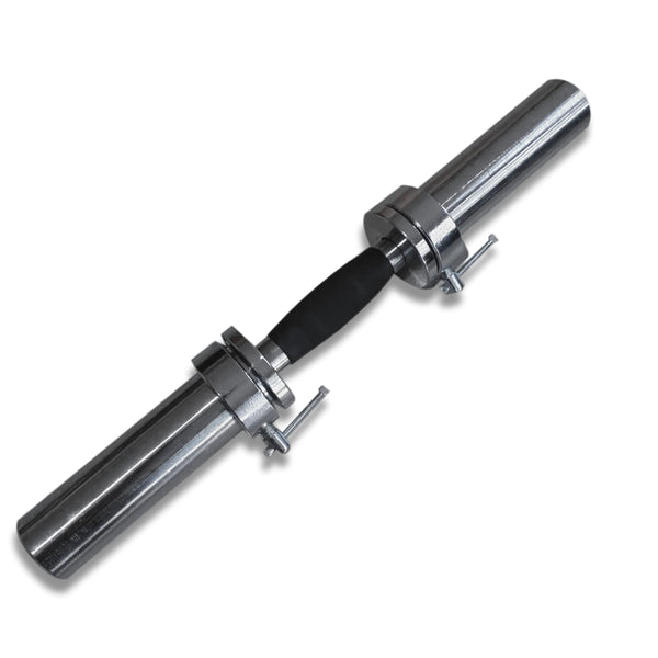 The CAP Barbell Solid 20-Inch Dumbbell Handle with rubber grips was designed to handle heavy weights while offering exceptional performance. This dumbbell handle comes as a single handle with TWO collars and features medium-depth diamond knurling for a secure grip when weightlifting. The chrome finish prevents the dumbbell from oxidizing, and the rotating sleeves reduce pressure on the wrists. Incorporate this dumbbell handle into your strength training routine to build mass, burn more calories, and burn fat.