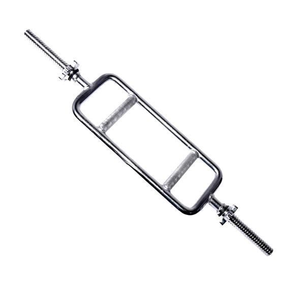 CAP's Standard Triceps Bar is designed for maximum concentration of the triceps muscle without the discomfort to your elbows, wrists or forearms. Target specific muscle groups to achieve your desired goals. This bar is equipped with diamond-knurled grips to reduce slipping during workouts and has a stylish black powder coat finish. This bar is made with solid steel to provide durability for years to come. Star lock collars included.