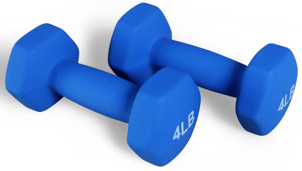 Fitvids Neoprene Dumbbell Hand Weights, Anti-Slip, Anti-Roll, Hex Shape Colorful, 4-Pound, Pair