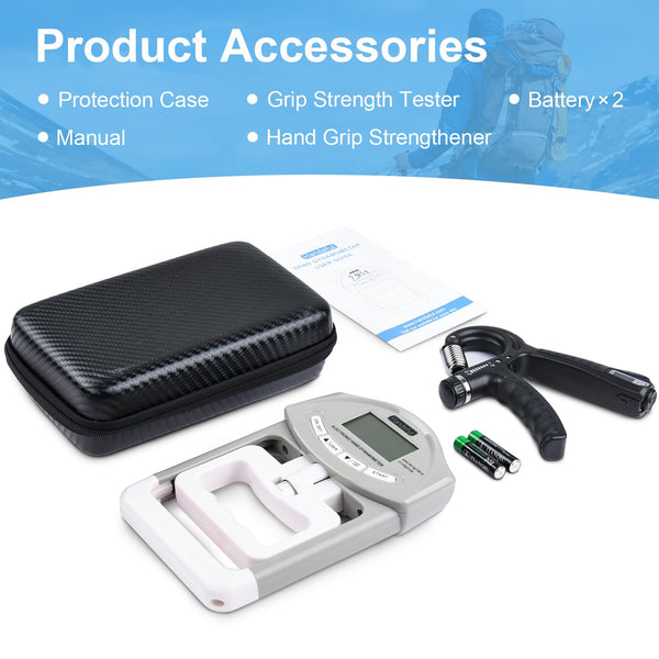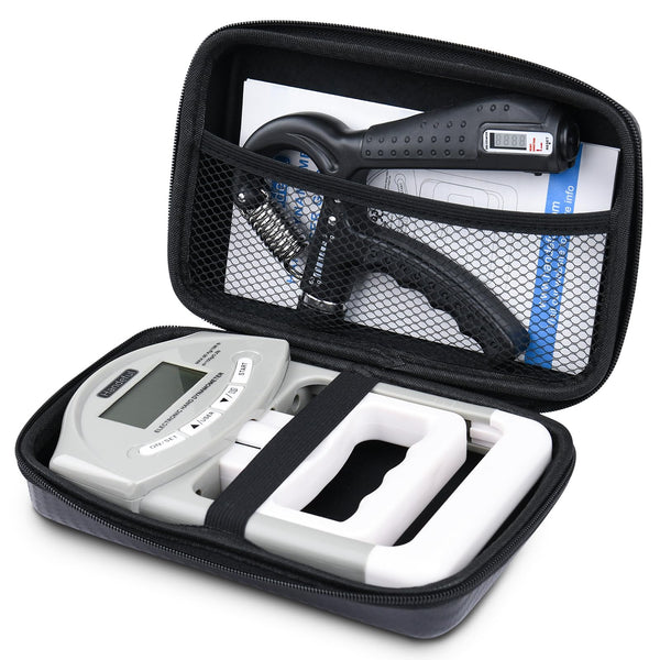 Introducing the Handeful Complete Grip Strength Training Set, the ultimate solution for anyone looking to improve their grip strength and overall hand fitness. This comprehensive kit includes a portable grip strength exerciser, a convenient carrying bag, and a high-precision dynamometer meter, all designed to help you achieve your fitness goals. The Handeful exerciser boasts a compact size that makes it perfect for carrying in your bag or pocket, allowing you to work on your grip strength anytime, anywhere. Whether you're commuting, traveling, or just taking a break at work, you can now squeeze your way to stronger hands with ease. The included dynamometer meter is equipped with a high-precision strain gauge sensor, capable of accurately measuring your grip strength up to 198Lbs / 90Kgs with 0.2Lbs / 0.1Kgs increments. This feature ensures that you can track your progress and adjust your training accordingly, ensuring a gradual and effective fitness program. The Handeful exerciser also features an adjustable resistance range, allowing you to customize your workout intensity to suit your individual needs. Whether you're a beginner or an experienced athlete, you can find the perfect level of challenge to help you reach your fitness goals. Crafted with a comfortable non-slip grip, the Handeful exerciser ensures a secure and comfortable hold during every exercise session. The high-quality stainless steel spring guarantees durability and long-lasting performance, making it the perfect addition to your fitness equipment collection. Regular use of the Handeful Complete Grip Strength Training Set has been shown to improve grip strength, relieve hand arthritis, increase hand strength, and enhance hand dexterity. It's also an excellent tool for recovery training and helps to reduce stress and anxiety. So why wait? Get the Handeful Complete Grip Strength Training Set today and start your journey to stronger, more agile hands. With everything you need for your grip strength training in one convenient package, you'll be able to achieve your fitness goals in no time.