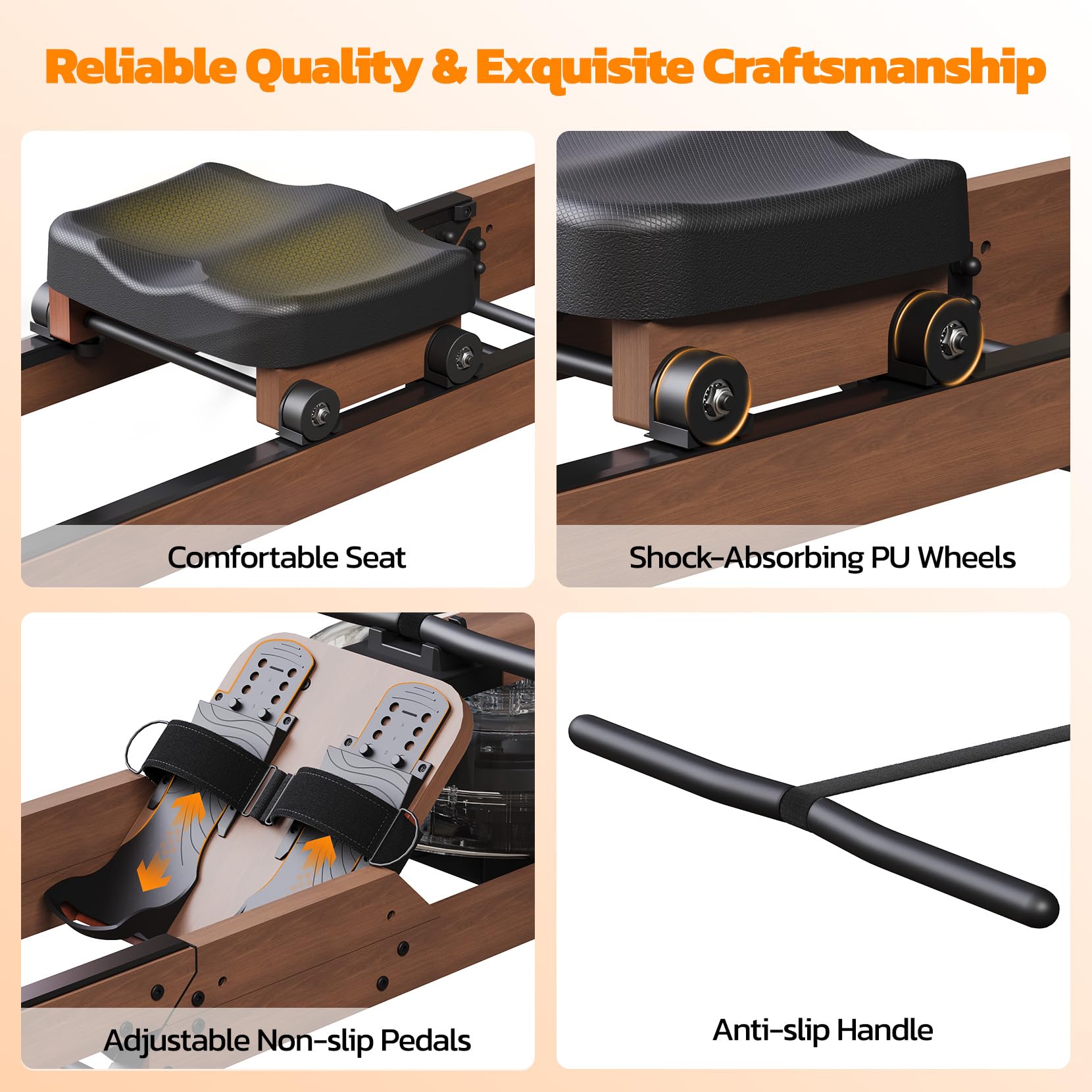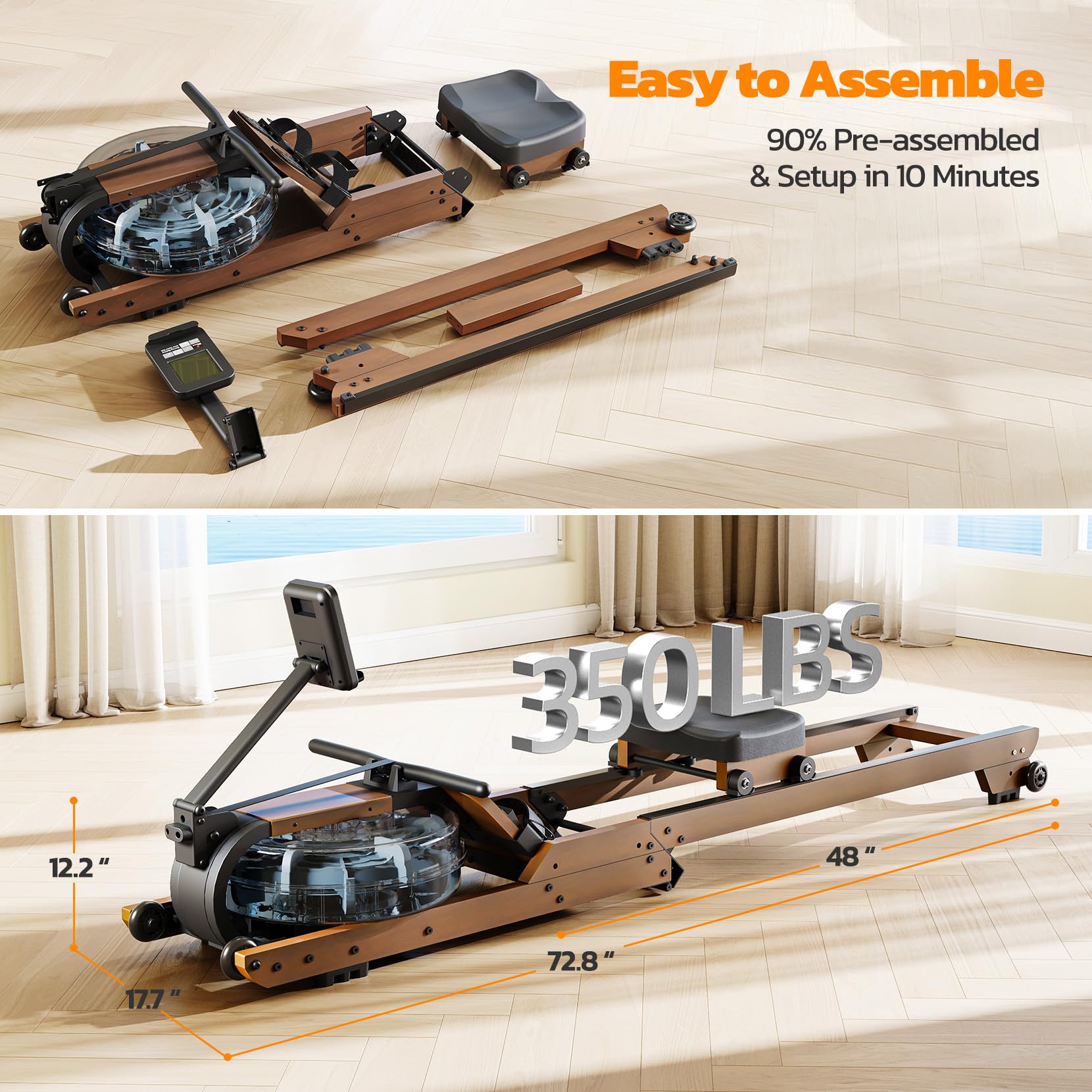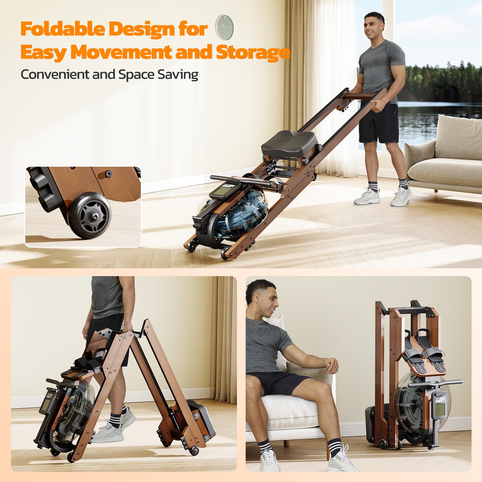 Dripex Rowing Machines For Home Foldable, Water Rowing Machine Max 350 Lbs, Water Rower With Smooth Slide Rail, Comfortable Seat