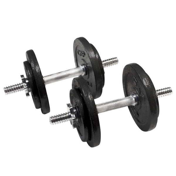 - Q: What is included in the CAP Barbell 25-Pound Adjustable Dumbbell Weight Set? A: The set includes two 14-inch dumbbell handles, four 3-pound plates, four 7.5-pound plates, and four star-lock collars.