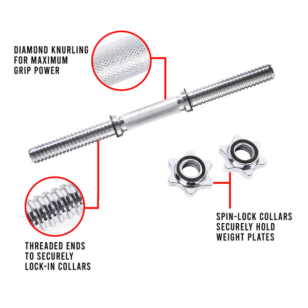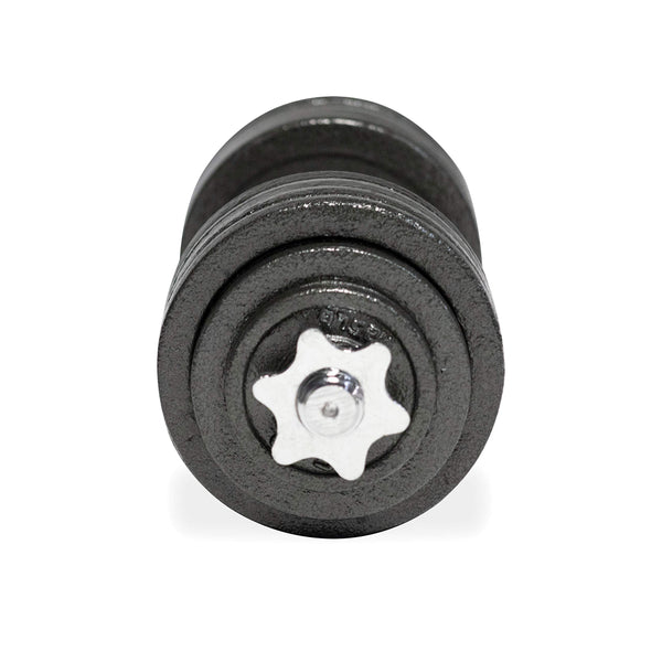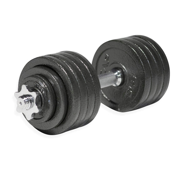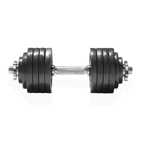 This adjustable dumbbell was designed to withstand the wear and tear of everyday workouts. The dumbbell and weights are rust-resistant, high performance and made from solid steel. These dumbbells boast style and functionality; They feature a chrome finish with diamond textured knurling on the handles to provide a secure and firm grip and prevent hands from slipping during exercises. Interchange the weights to accommodate different workout routines and target major muscle groups for a full body workout. The star-lock collars with rubber O-ring make changing out weights easy and the O-rings keep collars and plates in place. The compact design of this set makes storing this dumbbell and weight plates convenient and easy. This all-in-one dumbbell set eliminates the need for multiple dumbbells in your home gym. This set includes one dumbbell handle 1-1/8inch and cast iron weight plates. This set does not use standard plates.