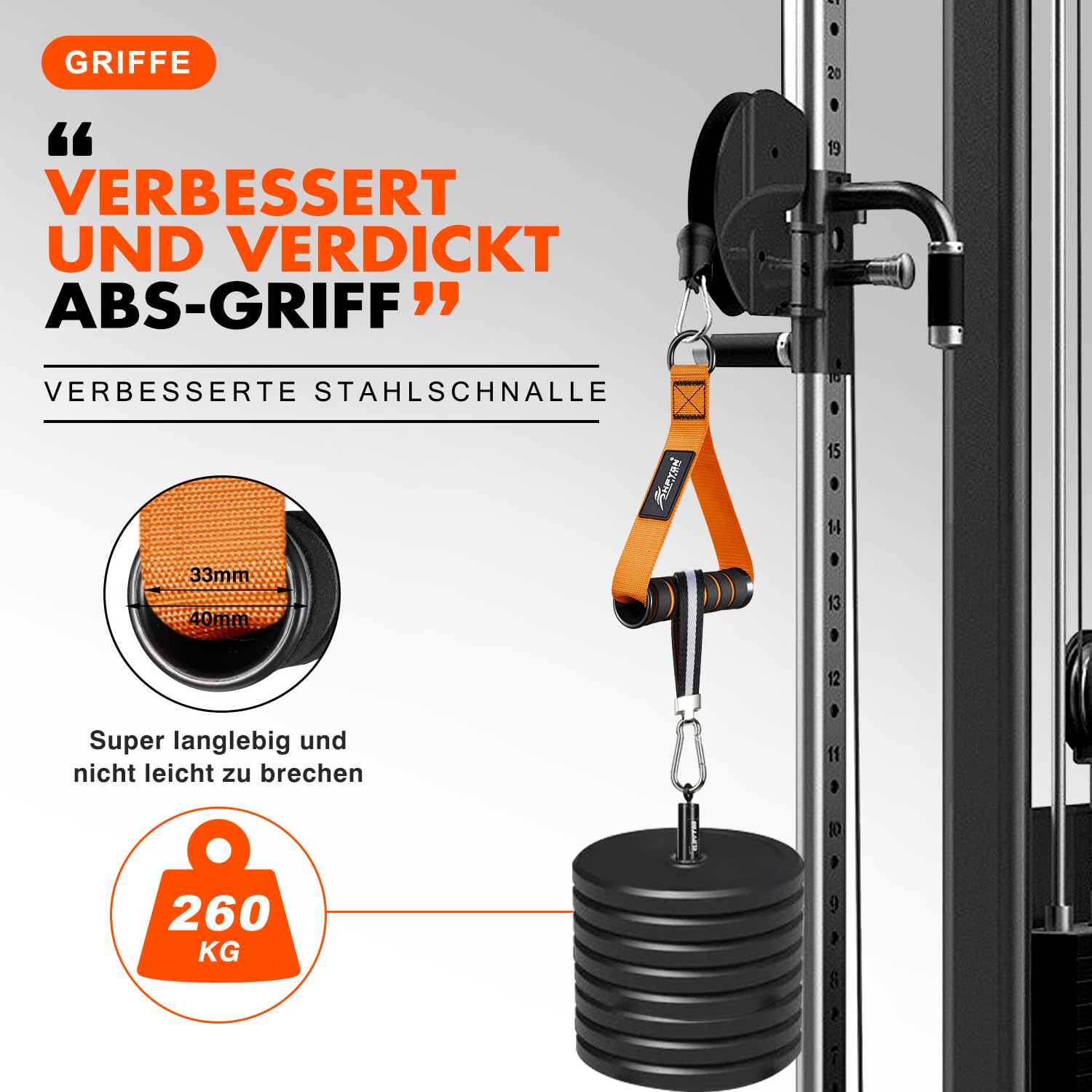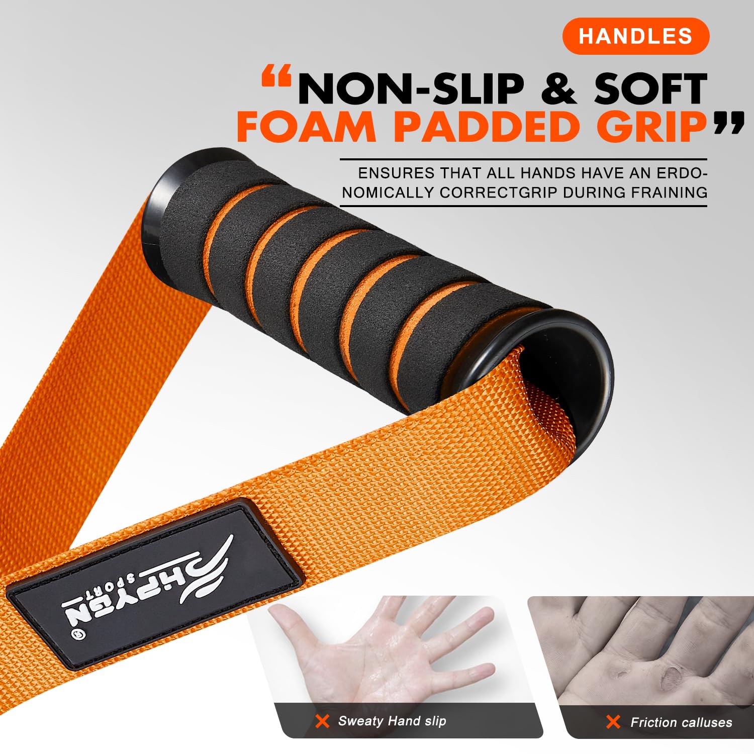High-quality materials, each aspect of these handles is made with premium materials. Thick woven nylon straps and heavy-duty stitching provide a good texture and flexibility on the handles. Comfortable grip: The high-quality soft and non-slip foam handle provides enhanced grip strength. The soft foam cushioned grip ensures maximum comfort, allowing you to focus on your workout without hurting your hands. Super sturdy handles - Wide enough to accommodate large hands. The handles are very comfortable and suitable for various exercises. D-shaped rings allow for quick replacement of straps. Suitable for home gyms and cable machines, bow machines, Smith machines, fitness machines, and exercises such as pull-downs. They are designed to withstand the toughest resistance band and cable machine workouts. Great for high pull-downs, pull-ups, and other suspension exercises on fitness machines. Soft grip for a comfortable feel. Easy to clean and maintain. D-shaped rings allow for quick replacement of straps. Sweat-absorbent and non-slip. Compatible with all tubing and loop bands. Material: Foam. Package includes: 2x resistance band handles.