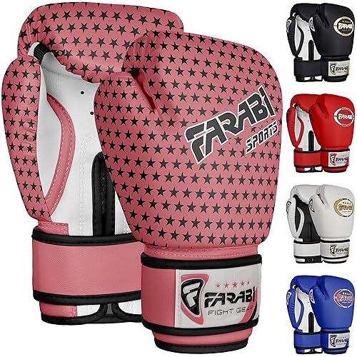 Farabi Sports Kids Boxing Gloves 4-Oz Kickboxing Muaythai Punching Bag Training Gloves Age 4-8 Year (Black, 4-Oz (Age 4-8) (Pink
