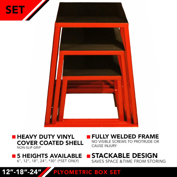 Jfit Plyometric Jump Box Set Of 3 - 12'', 18'', 24'', Red/Black
