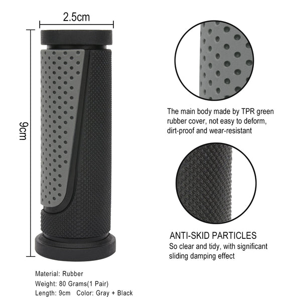TOPcABIN Short Mini Two-color Rubber Bicycle Handle Bar grips Features:1Extremely durable rubber2Super simple and convenient installation Very easy to install them on3High comfort ergonomic handle design,you can support the entire palm to the thumb,providing the best touch,decrease the pain of your hands with good protection for a long time rider Size: Length: 90mm ( 35 inch ) Product Diameter: 25 cm ( 1 inch ) Weight (1 pair): 80g ( 28 oz ) Suitable for: Bike handlebars with outer diameter 20-23mm Package: Handle bar grips A 2 Your feedback and review have been our biggest motivation Please leave your feedback & review so that we can create more practical products If you have problems in use, please feel free to contact us, We will help you with the fastest processing speed and make you feel satisfied