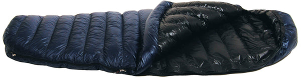 The latest addition to our Extremelite Series is a wide sleeping bag made for side sleeping comfort, the Western Mountaineering Terralite. It features our 12 denier ripstop nylon shell fabric with a 15 denier nylon taffeta lining material. There are two zippers allowing this bag to mate with our mummy bags and the second zipper opens the bag up completely around the foot. With both zippers open this bag can make a fairly wide ?amper vanin comforter, but even when zipped up it is extremely comfortable. This is due to its wide girth through the middle of the bag, a design that side sleepers will find ideal. Despite the comfortable shape, this down sleeping bag weighs less than two pounds. TerraLite 6ft 0in length Inside girth (shoulder/hip/foot): 65in /68in /42in Fill weight: 18 oz Total weight: 1 lb 13 oz Stuff sack size: 7in x13in