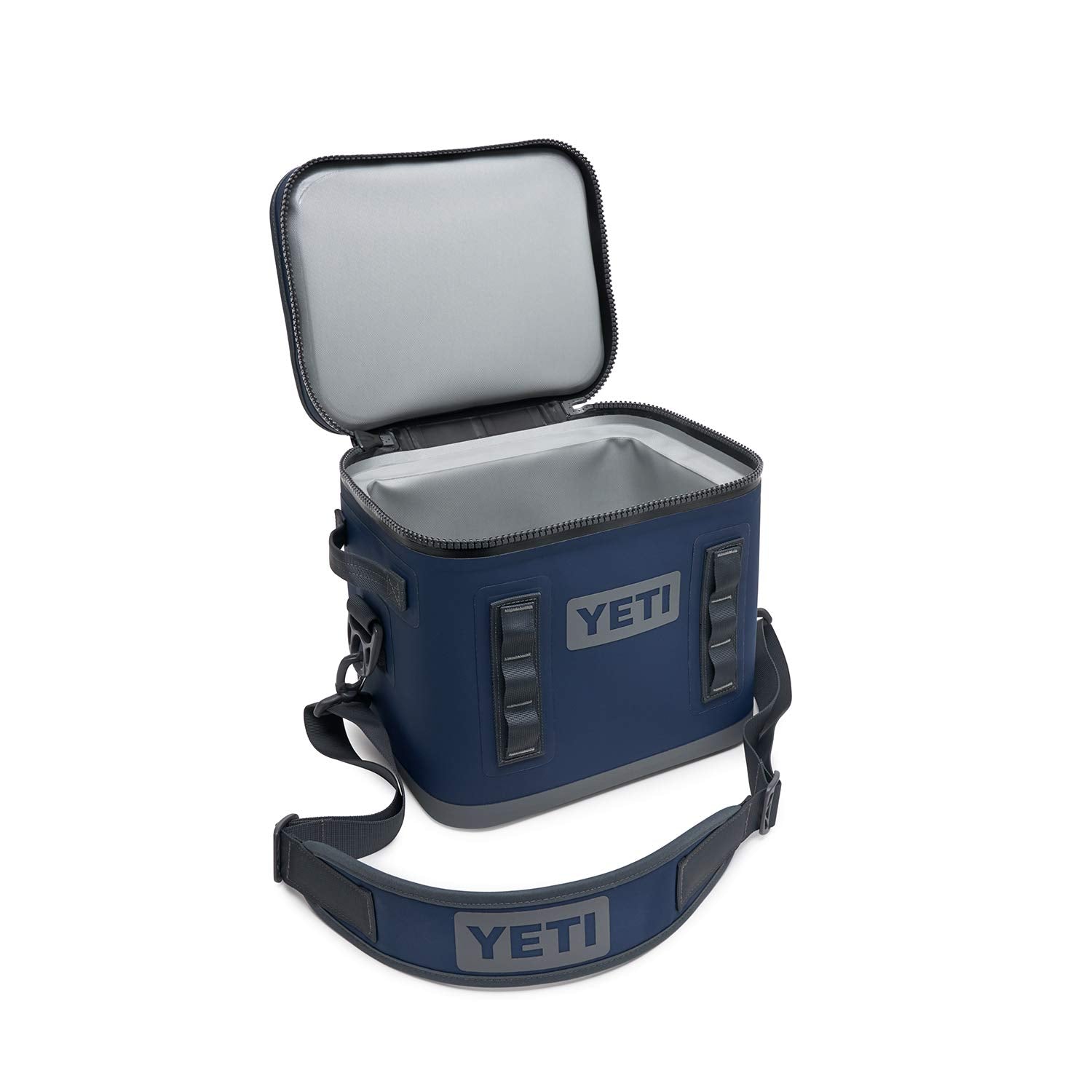 Hopper Flip There are some adventures where we just want to grab our stuff and go. Thats where the Hopper comes in. Its the first 100% leakproof portable cooler. Weve engineered it the way we do everything - to keep ice for days and be tough as nails. So dont call it a soft cooler - its anything but. The Hopper is loaded with features you wont find on any other cooler and built to go the extra mile, whether thats down a wild river in a kayak or on a floatplane trip to a remote salmon stream.DryHide Shell: the Flip's high-density fabric is waterproof and resistant to punctures, and abrasions. ColdCell Insulation: closed-cell foam offers far superior cold-holding to ordinary soft coolers.HydroLok Zipper: borrowed from survival suits and hazmat protective gear to make the ultimate waterproof, airtight closure.Tie-Down Points: D-ring tie-down points give you multiple ways to secure the Hopper.HitchPoint Grid: easily attach pretty much anything to your Hopper Flip. Bottle openers, carabiners, or accessories like the YETI Sidekick Gear Case.Double-Stitched Carry Options: with a detachable shoulder strap and reinforced handles, youve got options on how to make the load easier to carry.
