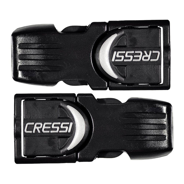 Product DescriptionGenuine Cressi buckles fins replacement for Cressi scuba diving fins: Frog - Master Frog - Pro Light - Thor. Each buckle consists of a male & female assembly. Corrosion proof plastic design. Easy to install on fin & strap. Sold by pair.Rubber strap not included.The buckles are made in Italy by Cressi, an Italian brand pioneer in scuba diving, snorkeling and swimming equipment since 1946.The product is covered by a 2-year limited warrantySet Contains:2 x Bukles