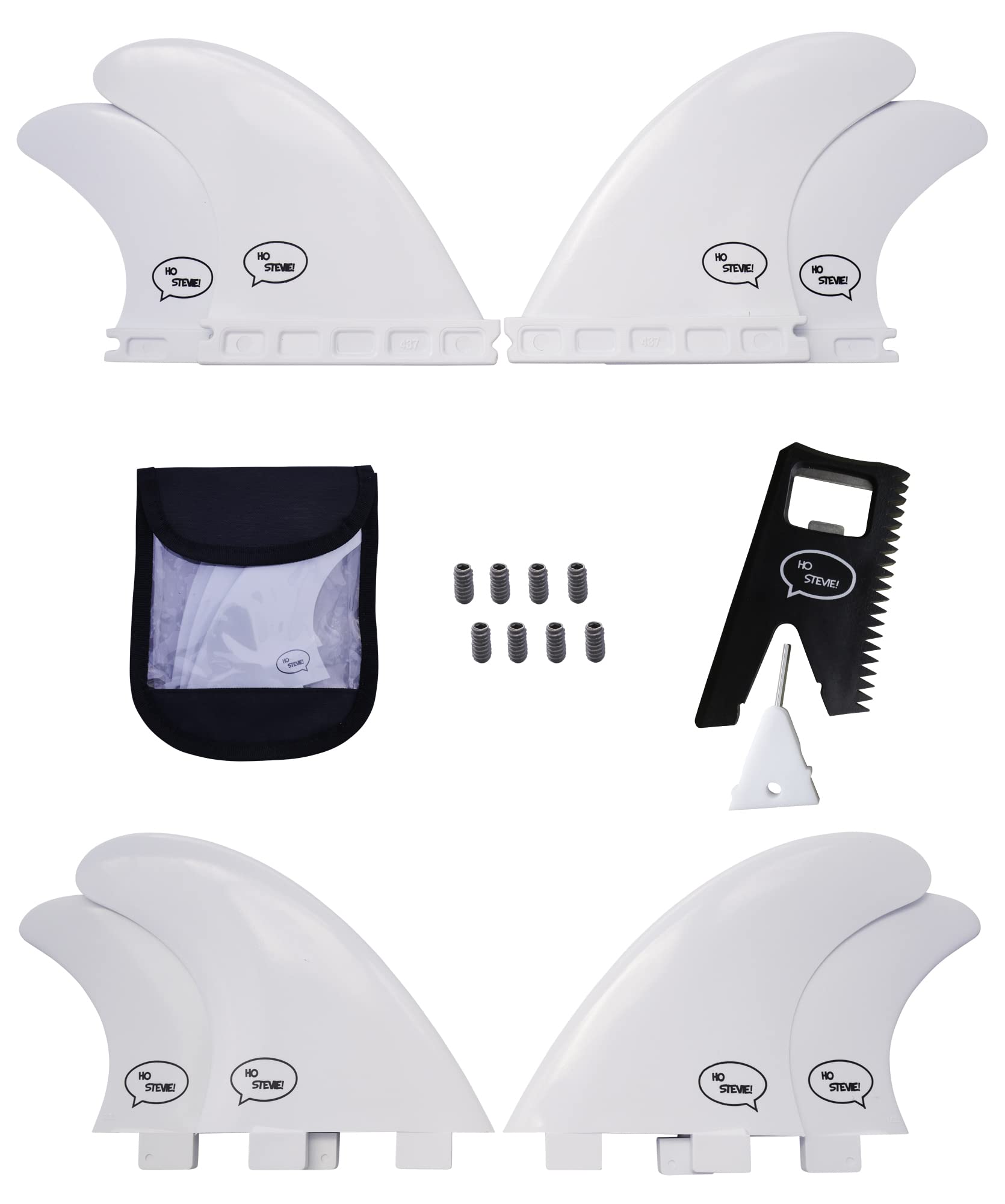 Ho Stevie! Frp Quad (4) Surfboard Fins - Stronger Than Regular Nylon Fins - Includes Fin Bag, Screws, Wax Comb And Fin Key (Whit