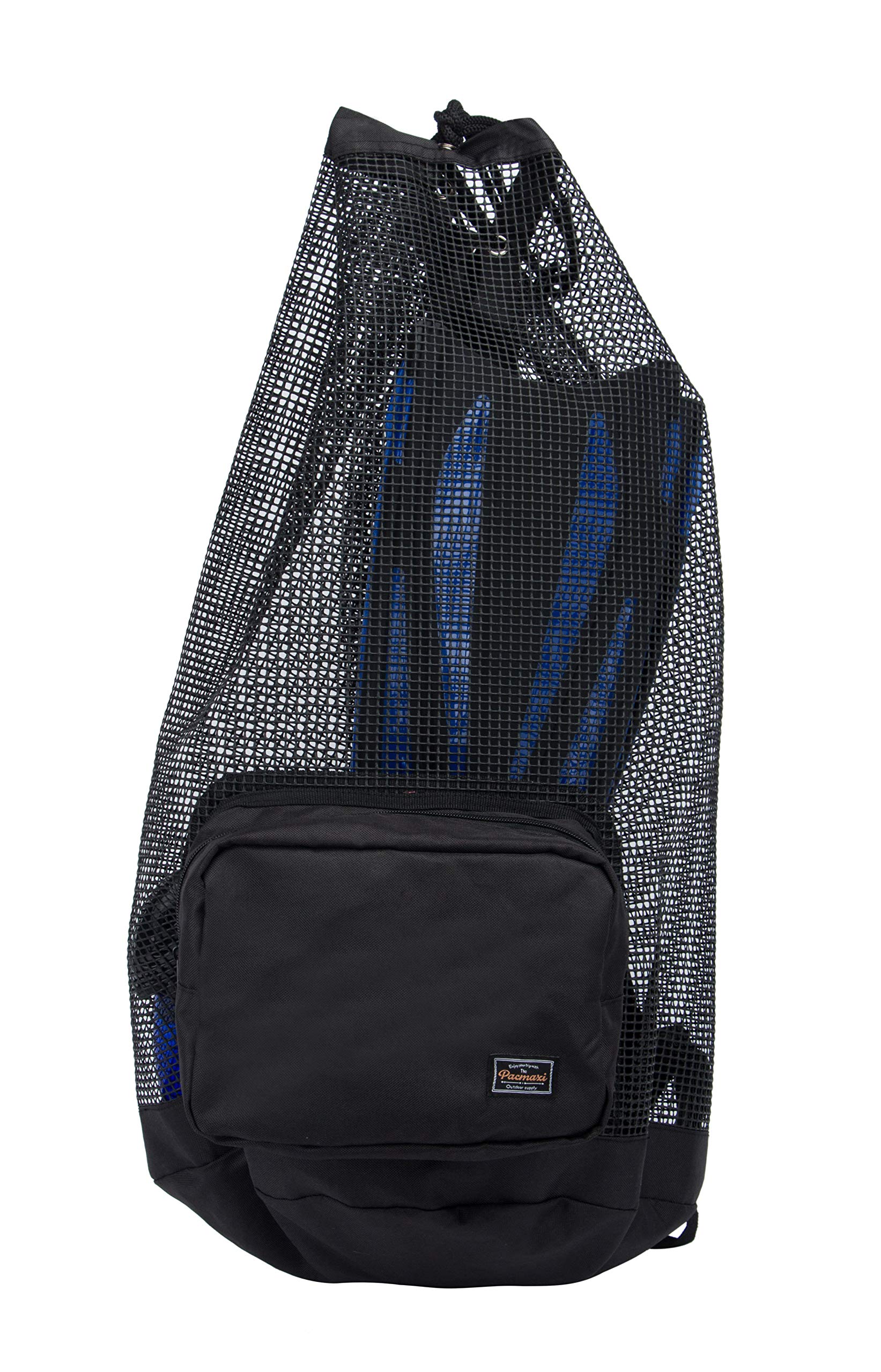 - Q: How much gear can the PACMAXI bag hold? A: This oversized mesh diving backpack is designed to store all your scuba diving or snorkeling equipment, including fins, goggles, masks, wetsuits, regulators, and shoes.