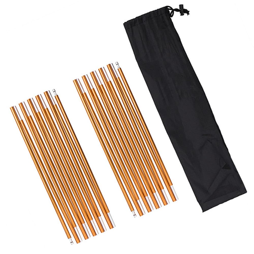 1?Space-saving and easy to carry.So it is ideal for outdoor sports such as camping, hiking, traveling, etc.(Not include tent,just poles) 2?If you only need to remove part of a section you can use a small pipe/tubing cutter to cut the aluminum section. Then just shorten the shock cord to match the new length. Material: Aluminum Alloy Color: Gold (as the picture shows) Length: approx. 3.6m / 141.7inch/11.8 ft Each Separate Section Length(11 sections/pcs): approx. 36cm / 14.2inch Diameter: approx. 8.5mm / 0.33inch Joint Length: approx. 4cm (help to ensure the insertion depth) Weight: approx. 480g Package include:2 pack Aluminum Rod Tent Pole