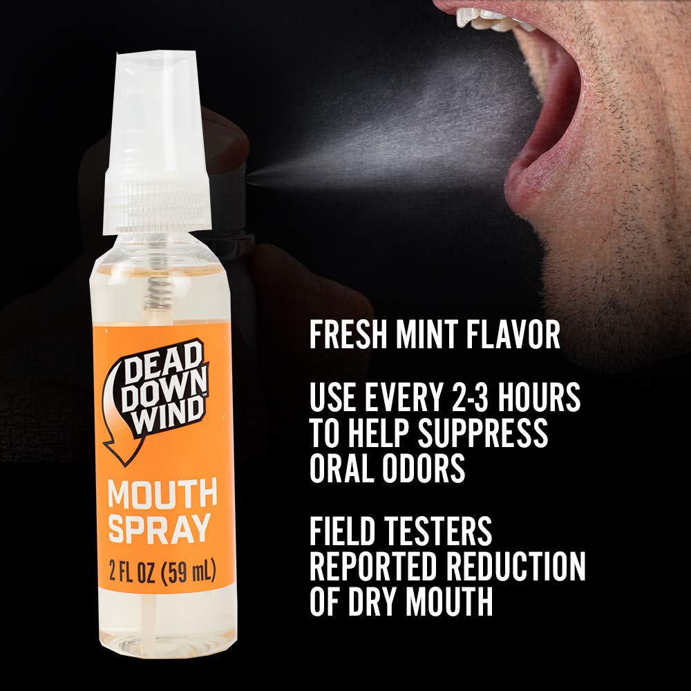 Bad Breath? Dead Down Wind can help! Spray six to eight times in mouth every two to three hours. Use of the mouth spray is also recommended after eating, when your mouth feels dry, when your throat feels scratchy, there is a tendency to clear your throat or cough. Especially important if you smoke, chew, or have gum disease or periodontal issues. There are on trillion bacteria in the average persons mouth at any given time. Now that is an odor causing hot spot. About Dead Down Wind Dead Down Wind products are specifically formulated to help reduce odor signatures to the lowest possible level. Our science-based, broad-spectrum approach offers the widest range of predator cue protection in scent control. From deodorizing laundry detergent that breaks down biofilms and blood stains to scent-eliminating personal care products and field sprays that further eliminate telltale odors, we offer a broad range of category-leading, odor-eliminating products.