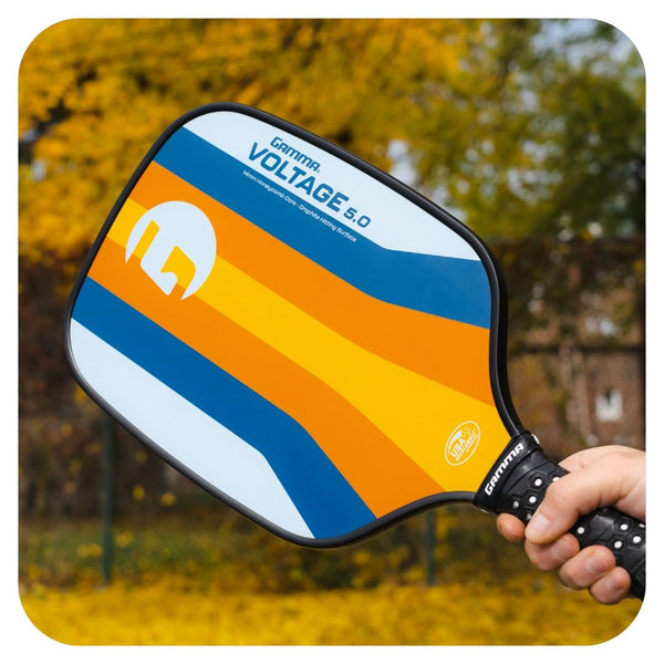 The GAMMA Voltage 5.0 Pickleball Paddle is for discriminating players who want a responsive paddle that produces intense spin. The specialized micro bead surface creates texturing to bite pickleballs for extra ball rotation with every shot. The Voltage 5.0 features a 14mm thick polymer core which offers greater power and touch. The broad hitting area and unique shape improves swing speed and results in less drag so you can fOCUS on hitting deep penetrating shots while keeping on top of the pace of ploy. As a finishing touch, the GAMMA Honeycomb grip provides cushion and connection to your paddle.