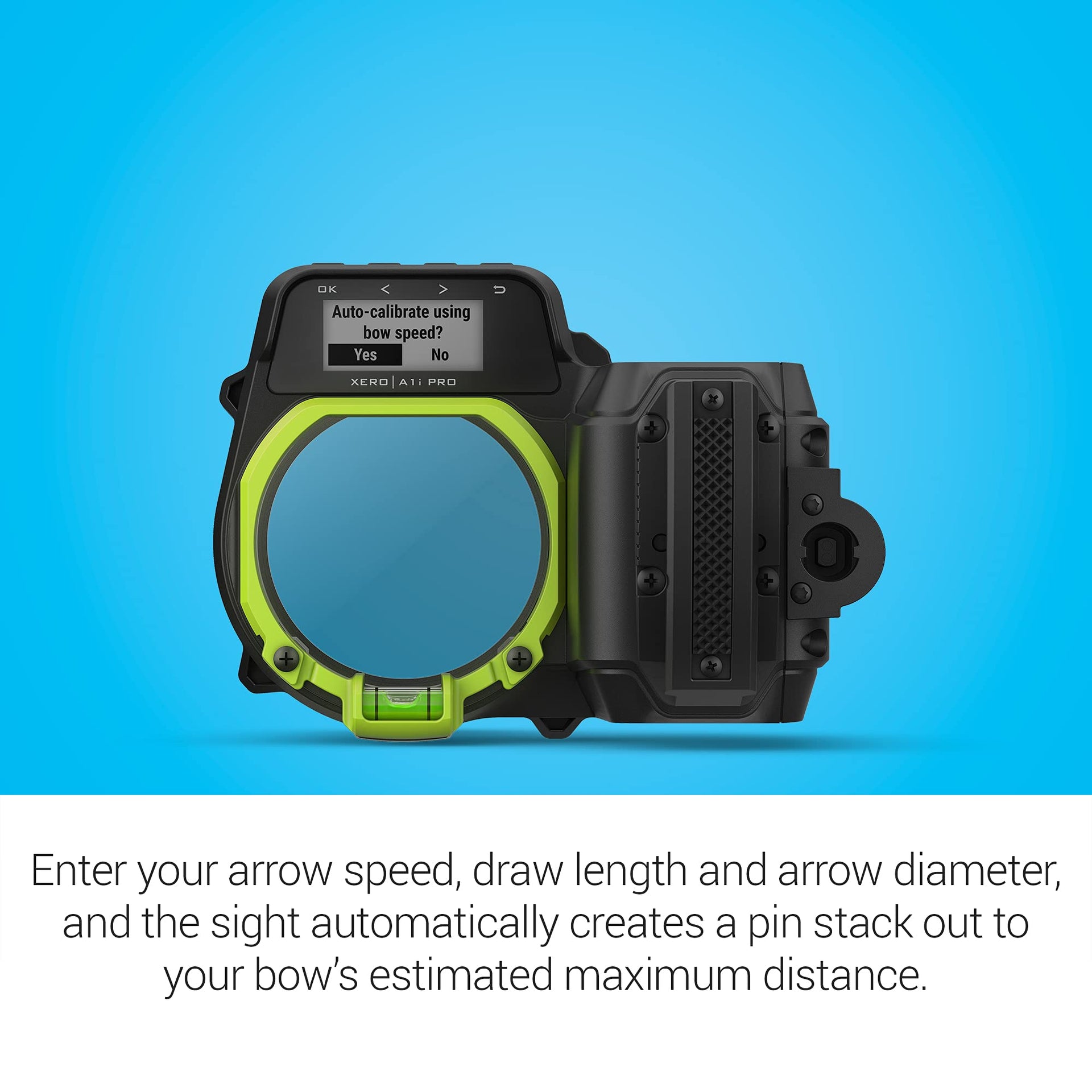 Leave the guesswork behind using Xero A1i PRO bow sight. Setting up this auto-ranging digital sight is simple and intuitive with microadjustments for elevation, windage and more. Enter your arrow speed, and automatically get a pin stack out to your bows maximum distance. The dynamic level feature delivers leveling information right next to the pin, so you dont have to shift focus to see if your shot is level. Quick detach makes it easy to remove the sight for travel, then reattach it to its original position in seconds. This sight also features second-axis adjustment, a silent trigger for full-draw or at-rest ranging, customizable arrow profiles and dual-color LEDs. To help track your game or arrows, the Laser Locate waypoint projection feature works with compatible Garmin devices (sold separately) to show you exactly where the target was located when the shot or range was taken. Some jurisdictions regulate or prohibit the use of electronic bow sights for hunting. Always know and obey all state hunting regulations before using this device.