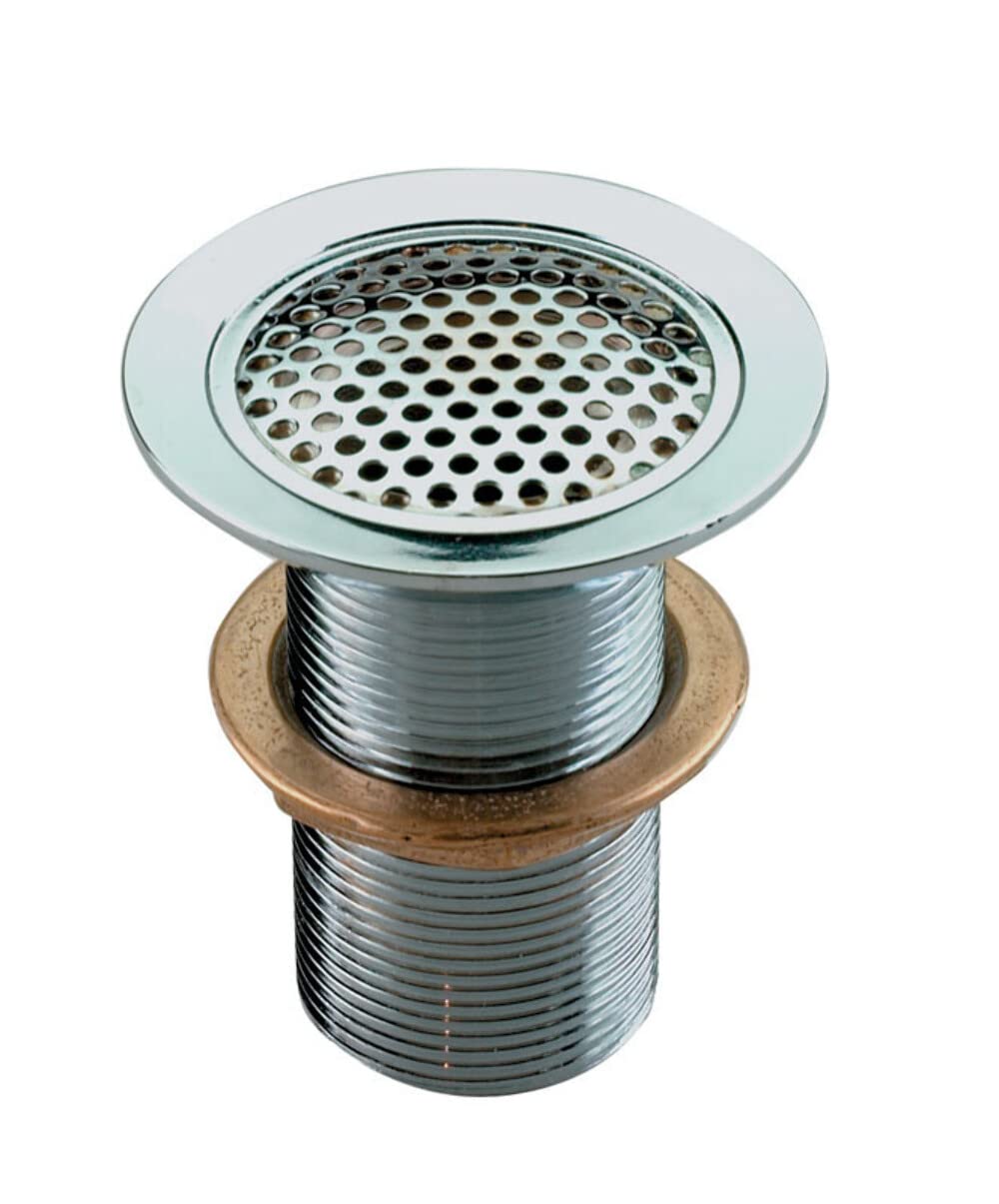 Flush mount drain is for use with pipe and is constructed of chrome plated bronze with a brass screen. For pipes with a 3/4'' O.D. and 2'' flange.