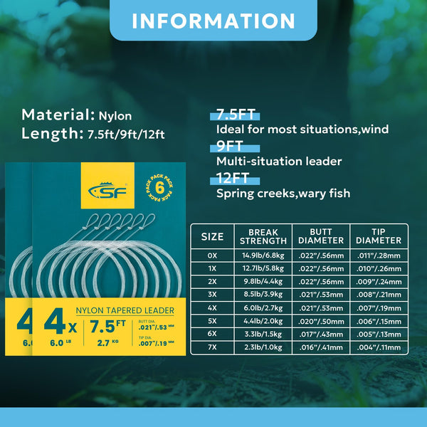 Sf 12 Pcs Pre Tied Loop Fly Tapered Leader Nylon Fly Fishing Trout Leader Line 7.5Ft-4X