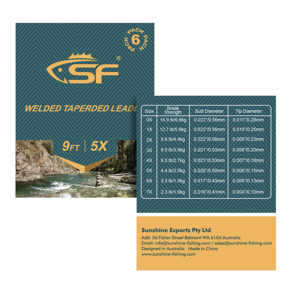 Sf Welded Tapered Leader Fly Fishing With Loop Nylon 9Ft Fishing Leader (6X 6 Pack)
