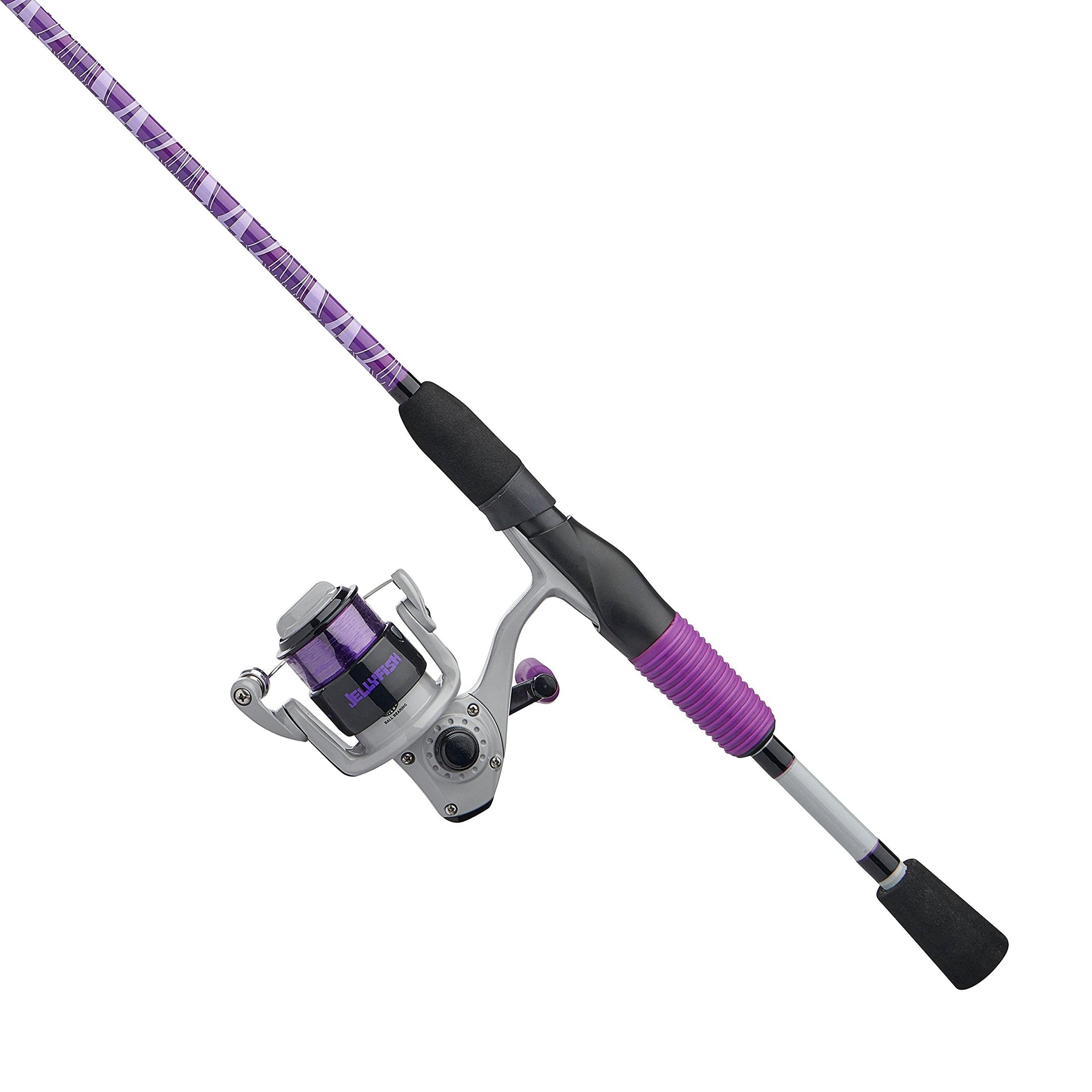 The Shakespeare Jellyfish combos are designed for ultimate comfort with unique Gel-Tech grips that squish and mold to your hands! Offered in both spincast and spinning options as well as two fun colors, theres a Jellyfish combo for everyone!
