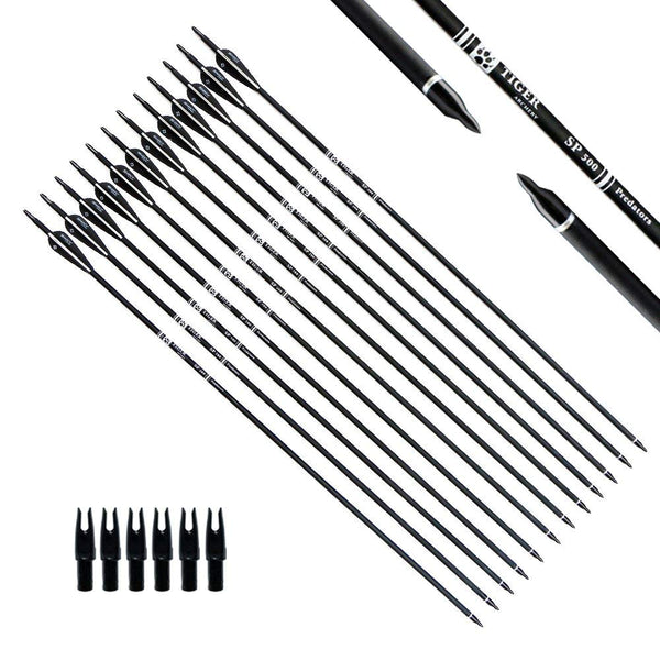 Tiger Archery 30Inch Carbon Arrow Practice Hunting Arrows With Removable Tips For Compound & Recurve Bow(Pack Of 12) (Black Whit