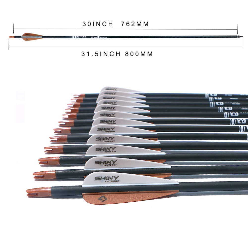 Tiger Archery 30Inch Carbon Arrow Practice Hunting Arrows With Removable Tips For Compound & Recurve Bow(Pack Of 12) (Brown Whit