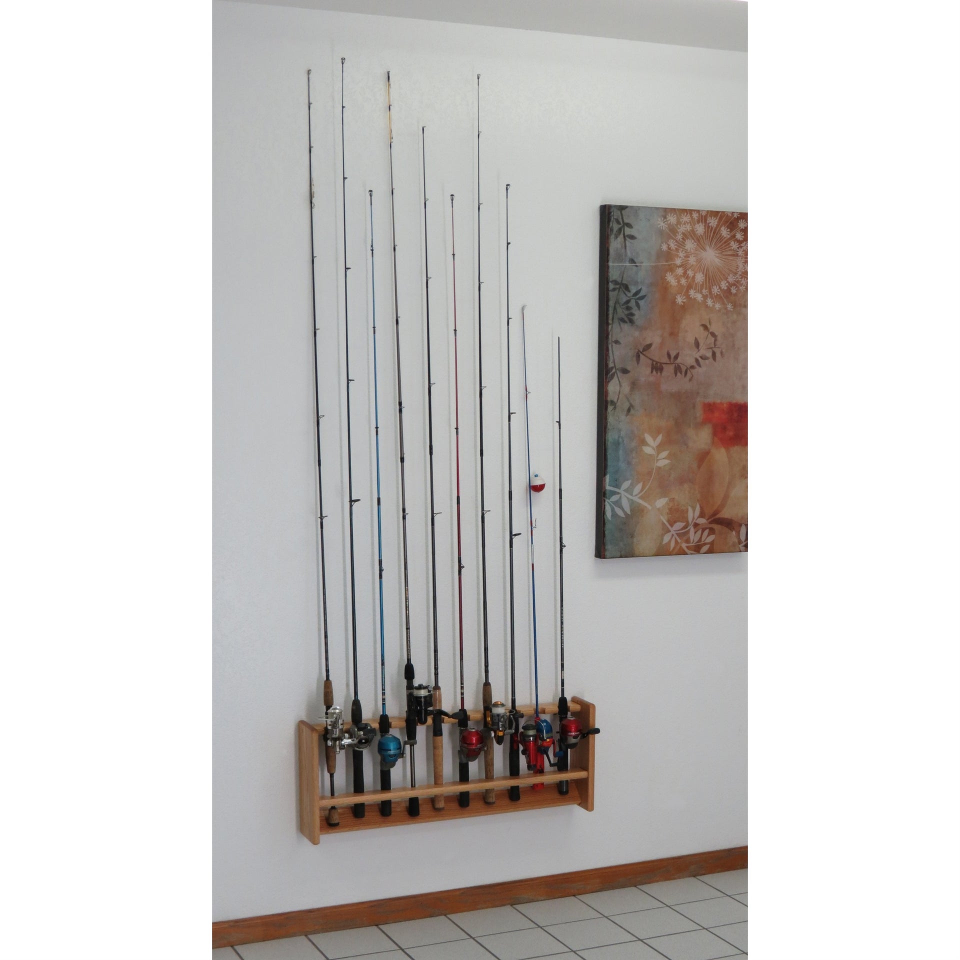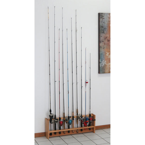 Wooden Mallet Fishing Rod Rack, 10 Rod, Light Oak