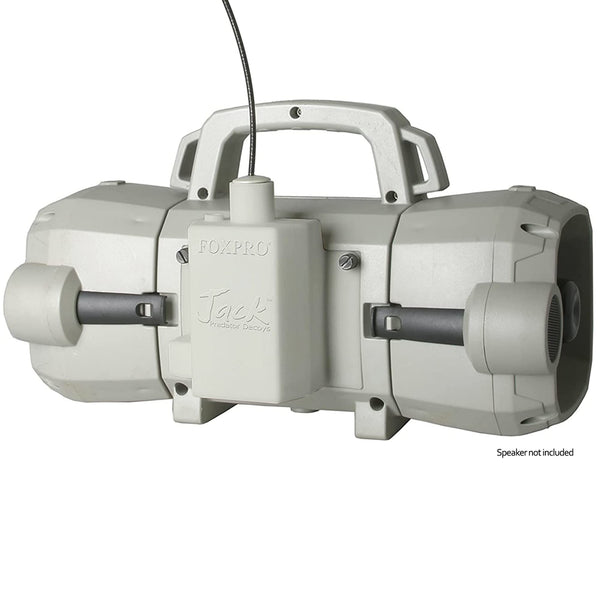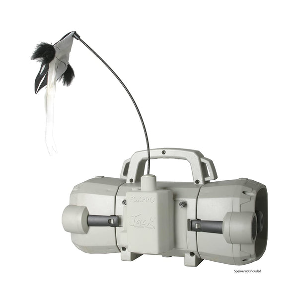 FOXPRO is proud to present the FOXJACK 3 electronic decoy. Turn your current FOXPRO Shockwave digital game call into an all-inclusive and portable Predator calling machine. Simply replace the existing battery door with the FOXJACK 3, connect the power connector from the decoy to the Shockwave digital game call and you're ready to go. The FOXJACK 3 comes with a bird topper (which resembles a woodpecker) with a whisper quiet motor. Use the FOXJACK 3 to add realism to give Predators the visual confirmation that they are looking for. The FOXJACK 3 can be controlled remotely with your FOXPRO Shockwave digital game call (FOXPRO Shockwave sold separately). the Auxiliary button on your FOXPRO Shockwave remote control starts and stops the action of the FOXJACK 3.