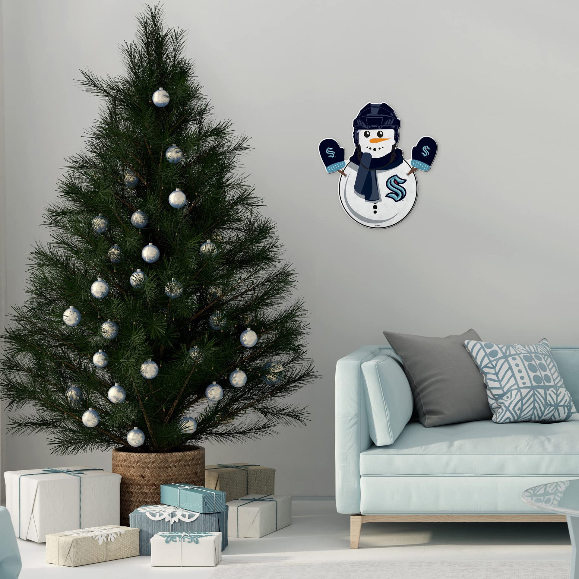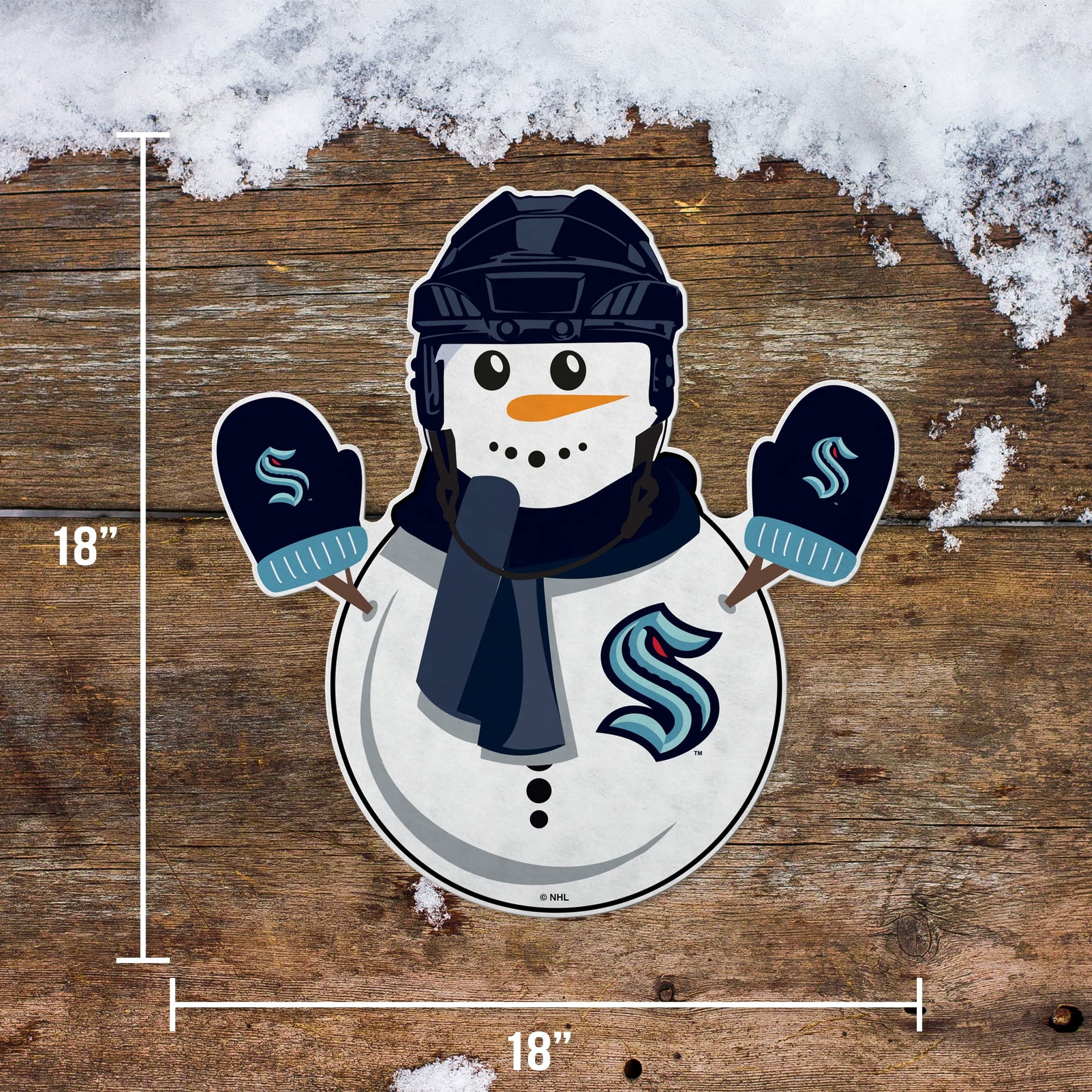 Rico Industries Nhl Hockey Seattle Kraken Snowman Shape Cut Pennant - Home And Living Room D Cor - Soft Felt Ez To Hang