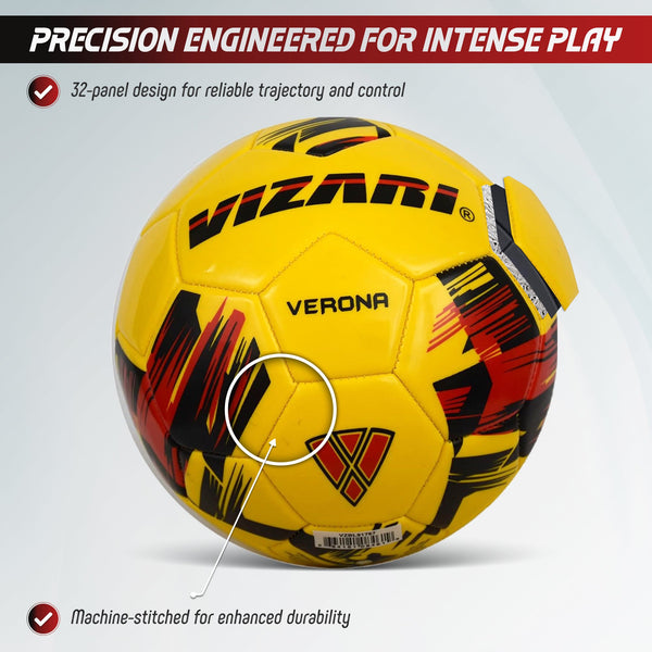 Ans: The Verona Soccer Ball features a 32-panel construction for enhanced durability and ball control.