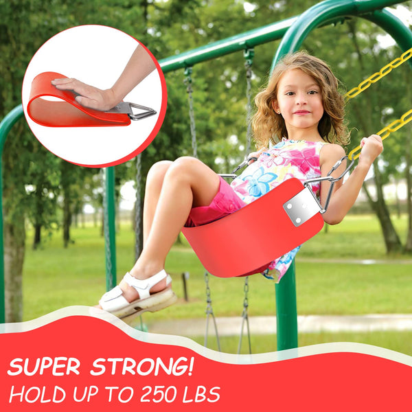 Specification: 1.Material: Polymer + metal 2.Measures:77.2*15*0.7cm 4.Maximum afford: 113kg /250 LB 5.Weight: 1KG Package include: 1X Polymer swing Belt Seat Note: The spring clip and chain are not included. If you need them, please kindly search ASIN:B00RB75C44 & B00NZUMN8Y. Buy SWING now and Have a great time with kids!!! Please search B00RBCVY5U for Yellow swing seat; B00RBCVVBC for Red one; B00NZUML7M for Green one.
