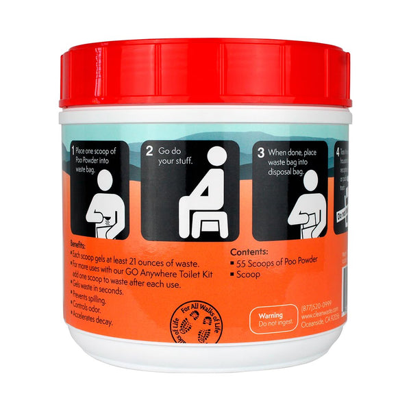 If you take the charge to 'leave no trace' seriously, as you should, it's time to invest in the Cleanwaste Mini 55-Use Poo Powder Waste Treatment. One scoop of environmentally friendly Poo Powder will gel and solidify 21 ounces of liquid and solid waste, which means you won't have to worry about spills and splashes when you stash your waste-bag in your backpack and march on down the trail.