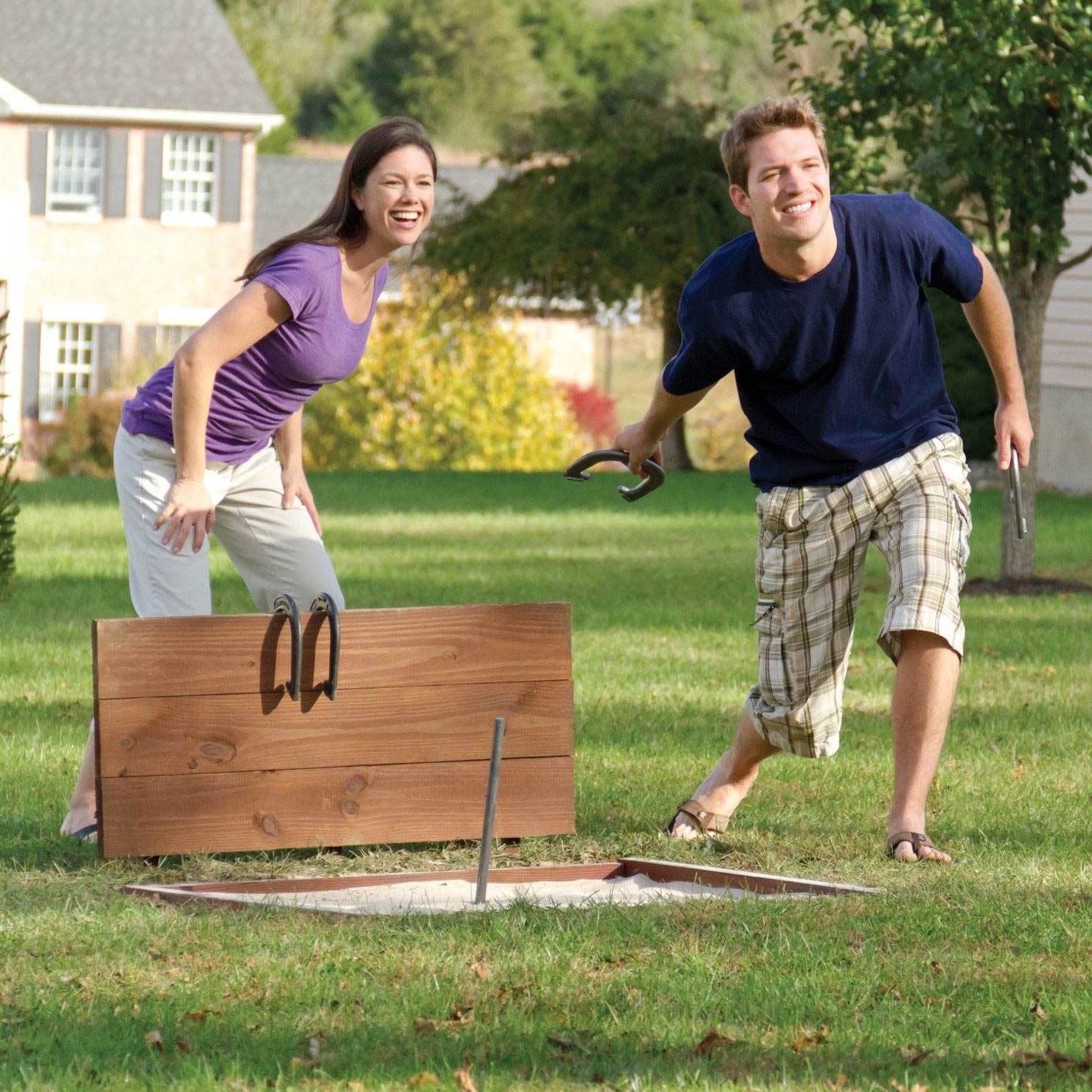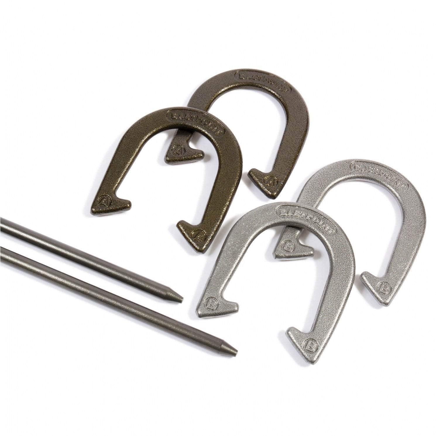 Wild Sports Horseshoes Outside Game with 4 Cast Iron Horseshoes & 2 Solid Steel Stakes - Horseshoe Set Yard Game with Portable Carry Case - Backyard, Beach & Lawn Games for Adults and Family