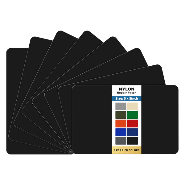 Waterproof and Durable: Nylon self-adhesive outdoor repair tape is wear-resistant and scratch-resistant. The fabric surface is waterproof, comfortable to use, not easy to wear out, can patch for clothes and outdoor tents, etc. The patches are firm and durable and moderately flexible and can blend well with nylon fabrics such as down jackets, umbrellas and tents, with a long service life. | Strong Adhesion : The backing adhesive is made of fabric-specific adhesive, has a 20% higher adhesive force than other repair tapes. More firmly, not east to fall off, and repairing more natural. Removed without leaving any residue. And it can be washed with water and machine, but it needs to be rinsed with clean water 24 hours after use. | Wide Applications: The nylon repair patch is suitable for repairing down jacket, tents, umbrella, and more. It can easily refurbish and repair scratches, holes, cracks, and other damages, eliminating the need to purchase new furniture or outdoor gear. The lightweight packaging allows for easy carrying and storage. | Instructions for Use: Ensure cleanliness and dryness of the damaged area, then cut the patch to the appropriate size. Peel off the backing paper and apply the patch to the area that needs repair, completing the process. This quick and convenient method saves a significant amount of repair time and helps you solve your problems effortlessly. | Better Customer Service: For every set of canvas repair kits sold, we offer full exchange or refund if you are unsatisfied with our products for any reason. Due to slight color variations caused by different screens and photo shooting, you may choose the wrong color. We display our full range of color options on the detailed information page to assist you in making a better choice. If youre still unsure, please dont hesitate to contact us for assistance.