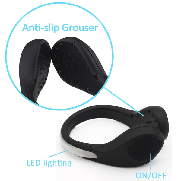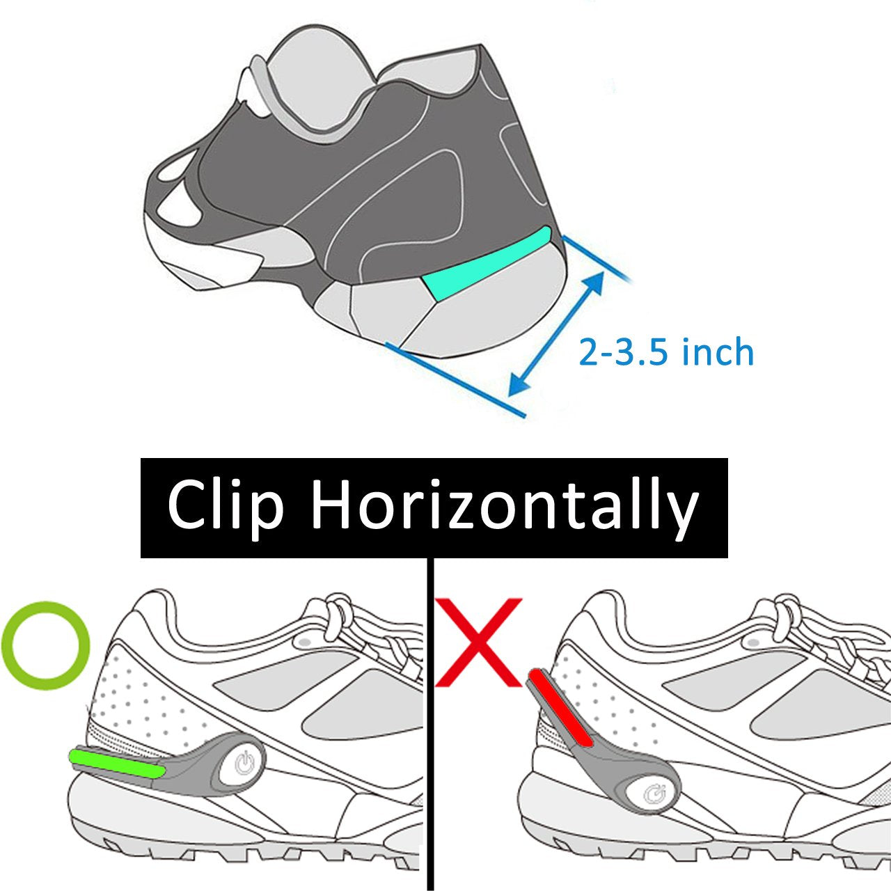 Be Safe - Be Seen! Benvo 2Pcs Reflective Running Gears Our Shoe Clips are so bright that you will be visible from over 1/2 a mile away! Easy to use, just slap them on the back bottom of your shoe and press once to turn them on and twice to go to flashing mode. Great for all night outdoor activities. You are getting a pack of 2 shoe clip lights and 1 year warranty. PERFECT TO KEEP KIDS EXTRA VISIBLE IN THE DARK! BE MORE VISIBLE AT NIGHT! PROTECT YOURSELF FROM TRAFFIC! Using the Shoe clip Clip horizontally. Pull the clip apart slightly and slide it back over the heel-part of the shoe, make sure that the clip is correctly attached around and on the heel. Make sure the arc-shaped ear upwards. Specification: -NW: 40g -Product Size: 3.5X2.6 inch -Target shoe size heel width: approx. 2~3.5 inch -Materials: PVC -Heat resistant: 80 degree centigrade -Cold-resistant:-10 degree centigrade -Not washable -Can clip on the shoe heel or put on the hand, or on your bicycle. Note: Not suitable for leather running shoes to avoid scratching the leather surface by the spike.