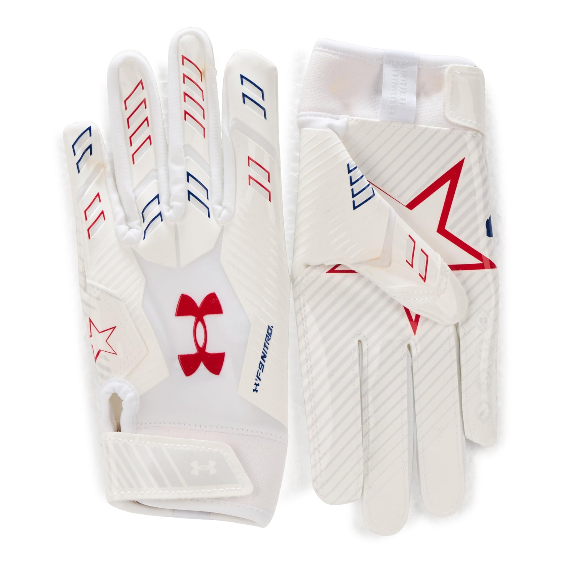 Under Armour Boys F9 Novelty Football Gloves, (104) White/Royal/Red, Small