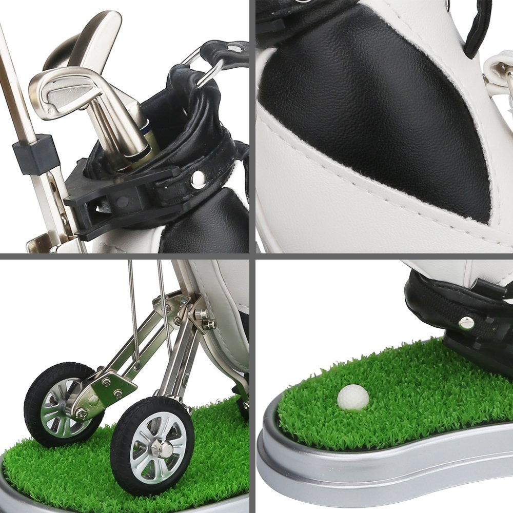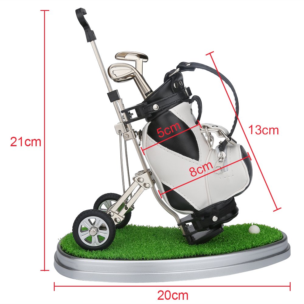 Specification: Product Size: 51 * 31 * 20 inch Packaging Size: 80 * 80 * 413 inch Weight: 097 LB Bag: 12PU leather trolley: zinc alloy Ball pen: aluminum alloy From 10L0L: Vehicle is made of zinc alloy, high precision, tyre tread clear three-dimensional, PU leather bag was produced by the golf bag professionals zippers and suture in uniform Soft handle pens are red, blue, black three different colors of ball pen Trolley not only is pen holder but also can pull individuality, novel and unique gifts The golf bag pen holder ,fashion and elegant, is the best gift for friends and family also is the best decoration for office,home and carIt would be the perfect gift chose, just enjoy glof on your table