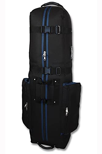 The constrictor II Travel cover features: 1800d fabric, easy rolling in-line skate wheels, heavy duty curb rails and 2 large shoe pockets for extra gear The top of the bag is heavily padded to help protect club heads and the internal and external compression straps to keep clubs secure during travel