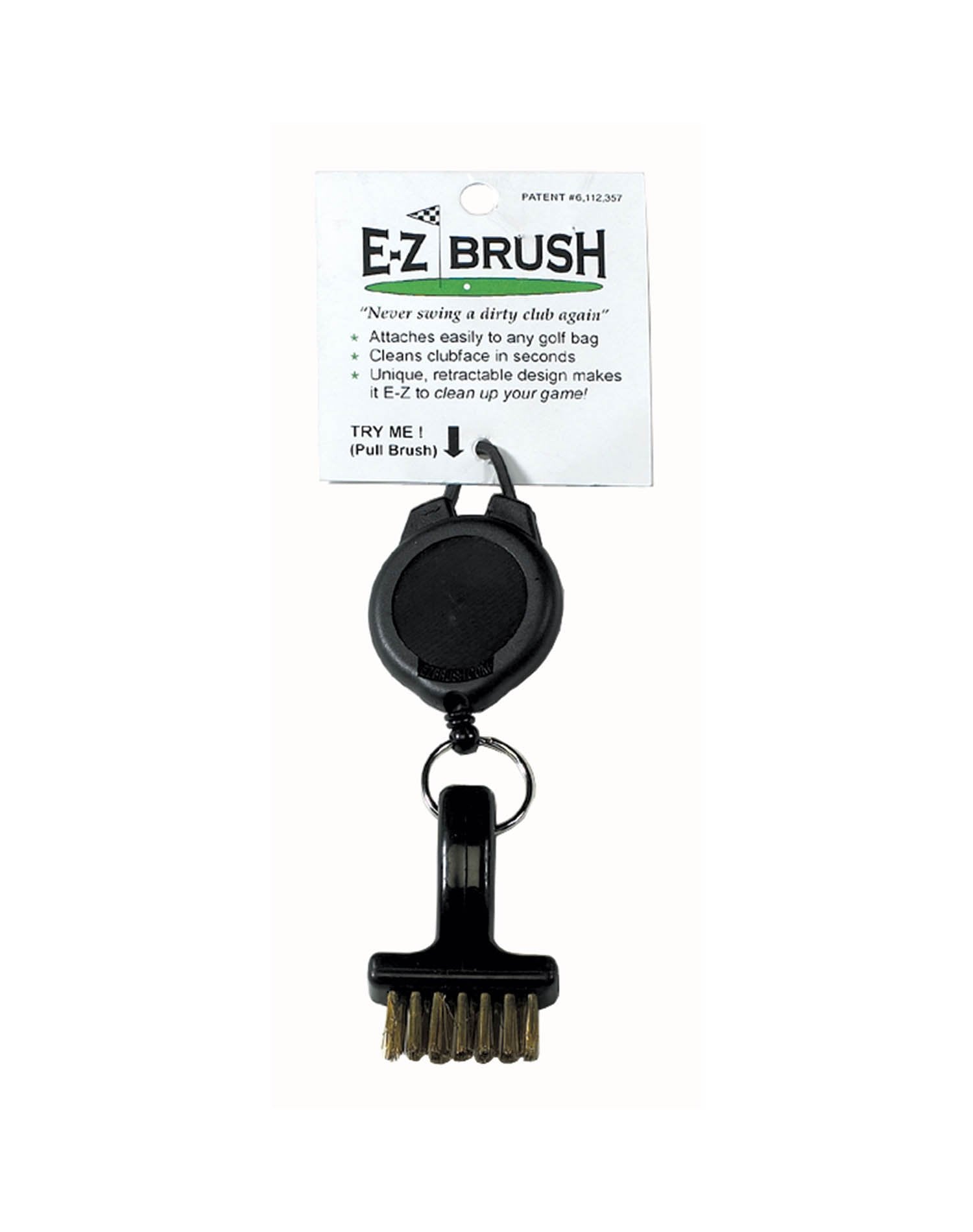features a compact, ergonomically designed brush attached to a retractable nylon cord which extends up to 30 inches The rugged brass bristles point downward and wont snag on your clothes when carrying your golf bag The unique, patented design allows for more freedom and a greater range of motion while cleaning your clubs