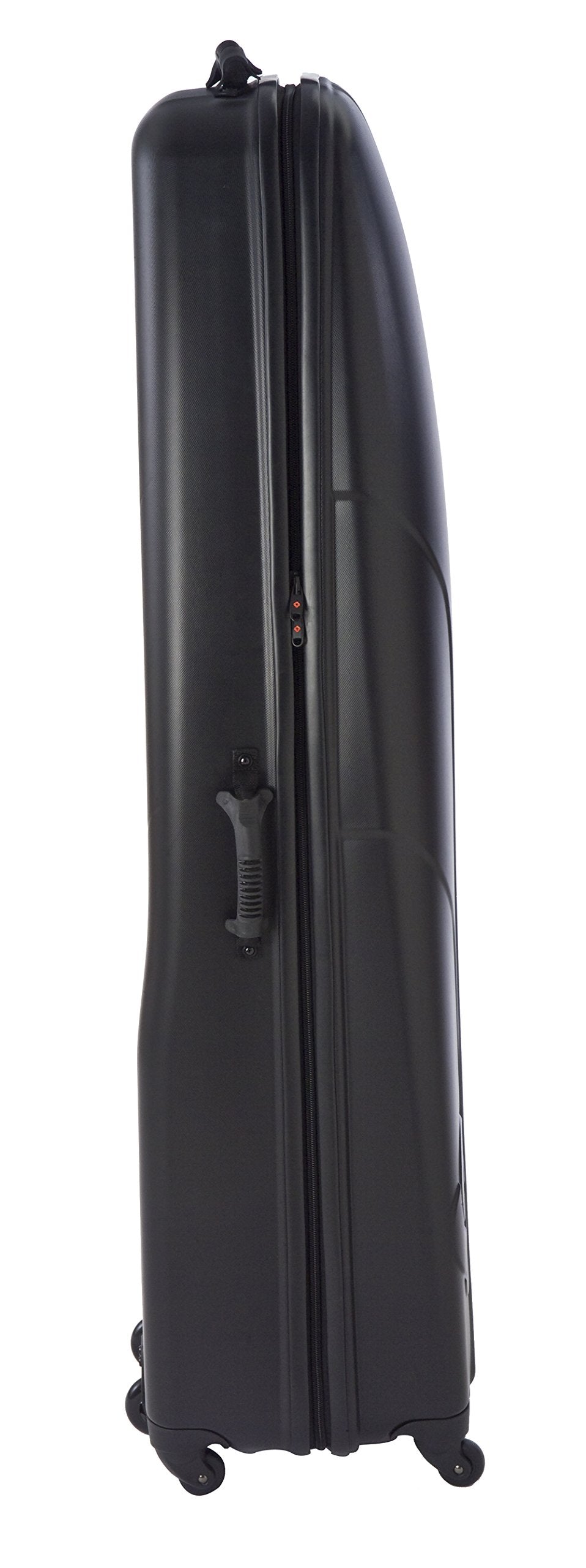 Travel the world worry-free with the Samsonite Hard-Sided Golf Travel Case. This lightweight hard-sided travel case boasts a durable, solid ABS Shell which shields your golf bag and clubs from the wear-and-tear of air travel. Measuring 54'' L x 12'' H x 16'' W, this travel case can accommodate larger 10.5'' top golf bags with longer, 48'' clubs. The hard-sided travel case features a padded quilted interior with extra foam cushioning on top to protect club heads and the internal compression straps secure the golf bag. Designed to make travel a breeze with 4 multi-directional spinner wheels and 2 in-line skate wheels, allowing the case to be pushed or pulled.