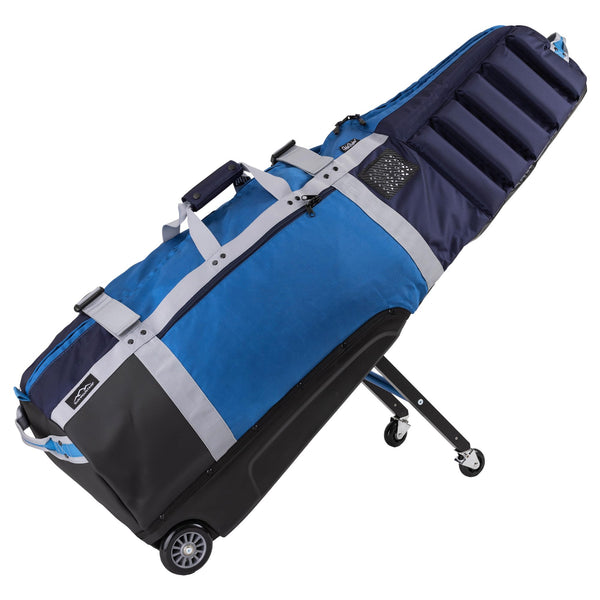 The Sun Mountain ClubGlider Meridian Travel Golf Bag combines durability, convenience, and protection for traveling golfers. With dense foam padding at the top, the golf luggage bag for travel shields clubs effectively, while pivoting wheels and an extendable leg mechanism make maneuvering nearly effortless. The bag's full-length, heavy-duty zippers allow easy loading, and two spacious exterior pockets keep extra gear within reach. Crafted from ballistic-style nylon and reinforced in high-wear areas, the ClubGlider weighs just 11.3 pounds, providing a reliable, easy-to-handle travel solution for golf enthusiasts.