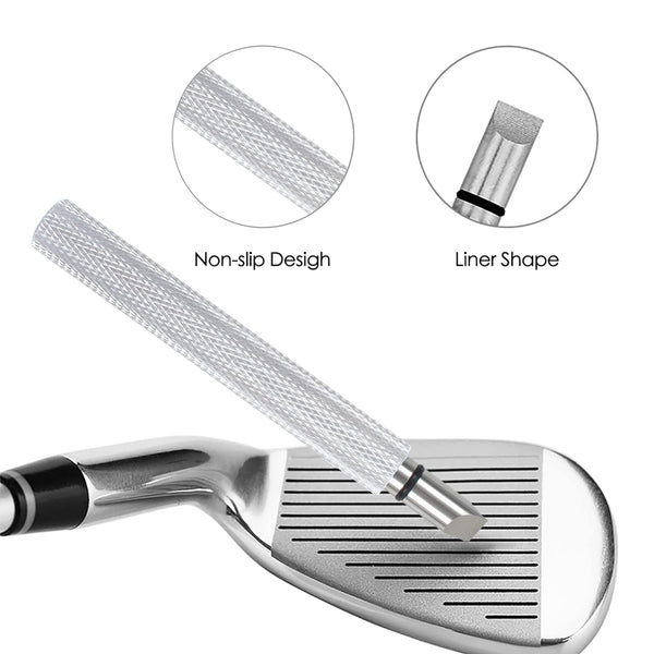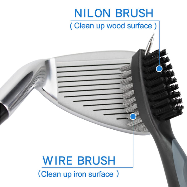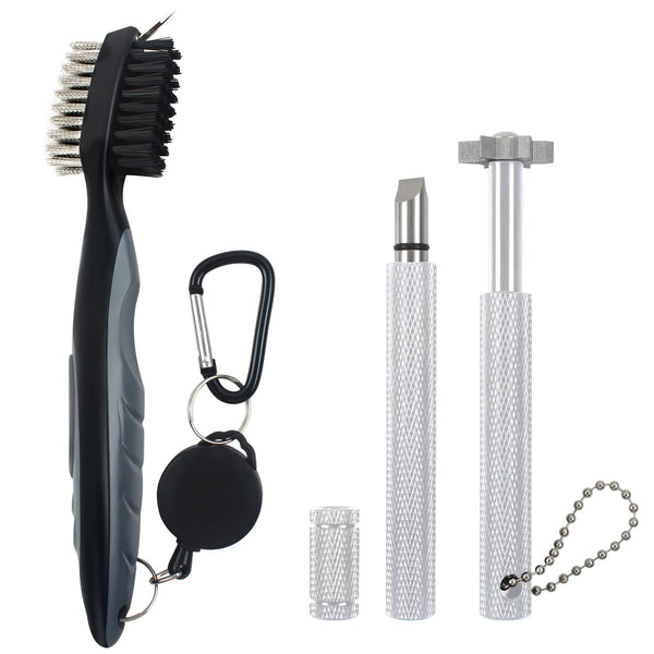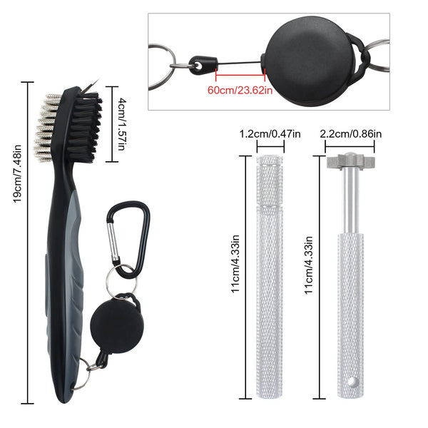 golf clean Tool Set ,Retractable golf club Brush and 2 golf club groove Sharpener for U & V-grooves, Portable Sharp and clean Kits for All golf Irons(Blue) gROOVE SHARPENER WORKS BY SHARPENINg THE ROLLED OVER METAL EDgES THAT HAVE cOLLAPSED INTHE gROOVES OF YOUR cLUB WHILST AT THE SAME TIME REMOVINg THE PARTIcLES OF DIRT,SAND AND gRIT WITHIN THE gROOVES THAT HAVE BUILT UP OVER TIME  Features:-Durable and portable accessory for golf bag-golf clean tool all in one -club sharpener Made of high grade precision steel, which is very durable-cleaning and sharpening the wedges and the staff regularly is good for improving Backspin and Ball control-club sharpener can sharpen all U, V grooves-groove sharpener Suitable for all golf irons and wedges you can bring this groove sharpener to all of your golf sessions Specification:-golf club BrushMaterial: Nylon + Steel Wirecolor: BlueBrush Hair Length: approx 15mm 06inchLength: 19cm 748inch-golf groove SharpenerMaterial: Heat Treated Steelcolor: BlueLength: 11cm 433inch-Package Includes: 1 X golf club Brush 2 X golf groove Sharpener cleaner