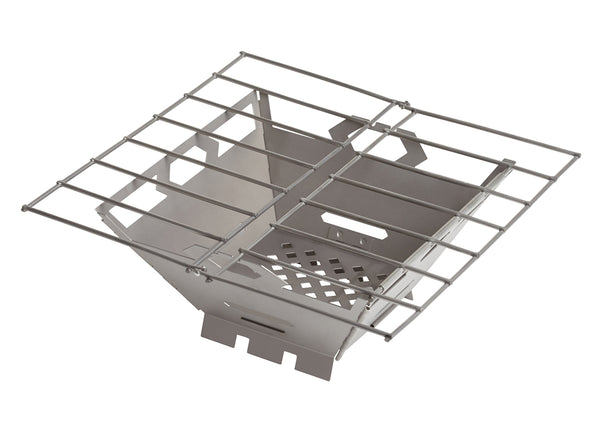 Get grillin in the backcountry without charring the Earth or weighing down your pack. The Vargo Fire Box Grill features a hinged grate and panel system for easy setup, fold-flat packing, and fire preparation. Just lift the grate and add your fuel.