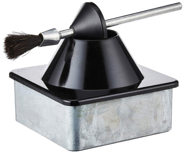 Heavy-duty aluminum pot has a 25 oz. Capacity and is designed to resist tipping. Cone-shaped opening is sealed with a reverse self-centering Cone thats attached to the brush stem. Cones are coated with Teflon to help prevent the accumulation of Cement. Brush included with glue pot.