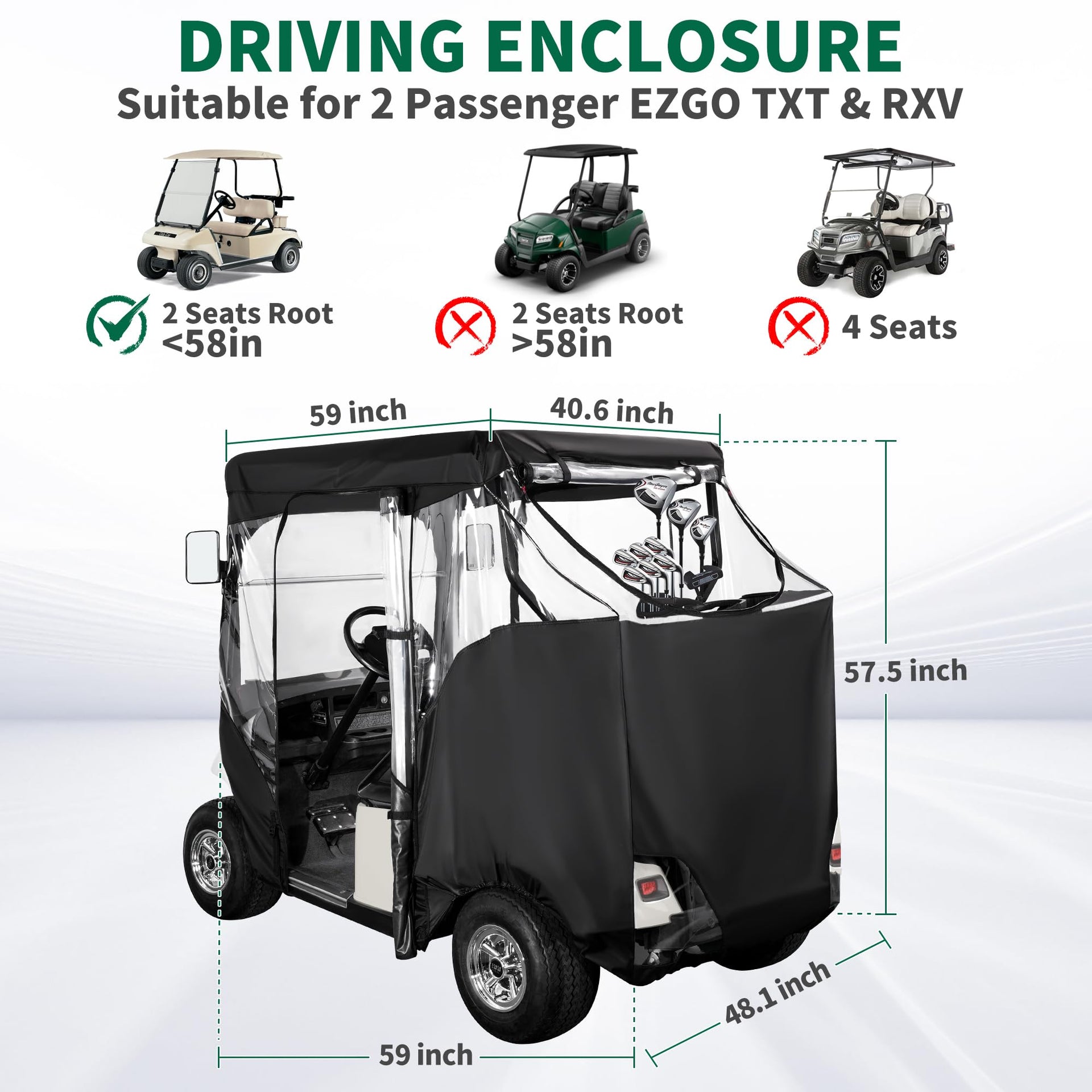 10L0L Golf Cart Enclosure for 2 Passenger EZGO TXT & RXV Golf Cart, Waterproof Windproof Portable transparent Golf Cart Cover storage Driving Enclosure