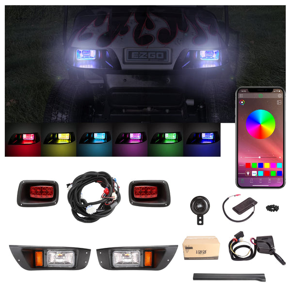 - Q: Are there any additional features for upgrading my golf cart with this kit? A: Yes, the kit includes an upgradable harness that allows for extending features such as brake lights, hazard lights, horn, and turn signals.
